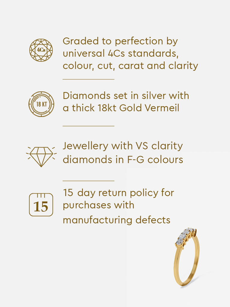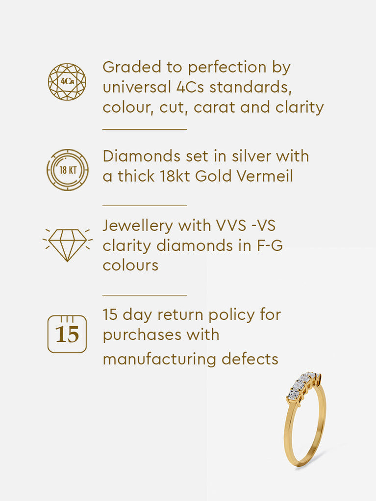 Emerald Cut Half Eternity Gold Plated Lab Diamond Ring