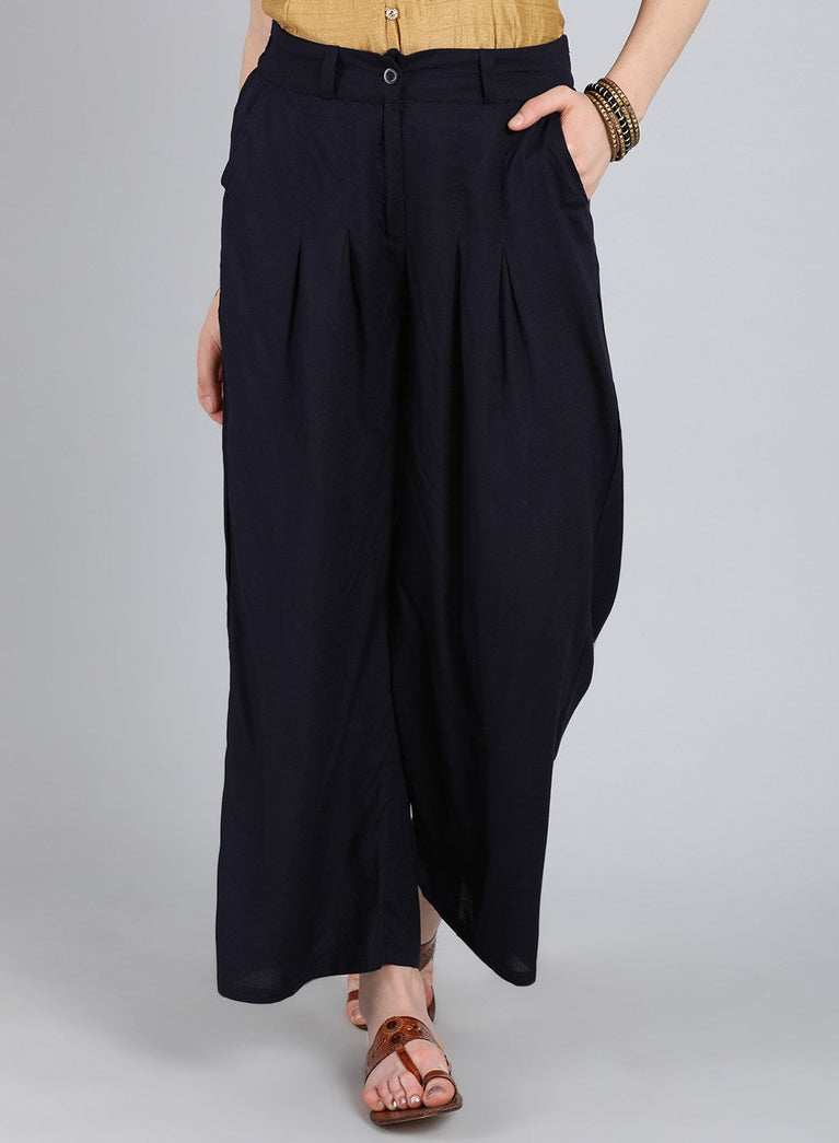 Blue Woollen leggings with elasticated waistband and placket detail at hem.