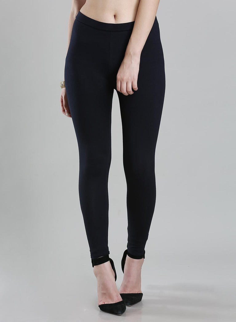 Black solid trousers with elasticated back. Wear these with contrast color kurta and ring-toed flats.