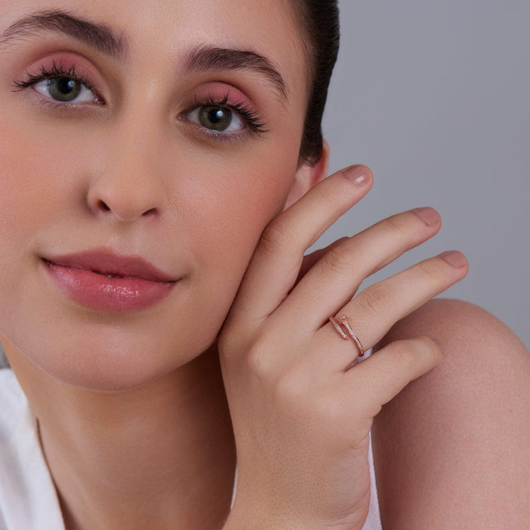 92.5 Pure Silver Stackable Finger RingShine every day with this 92.5 silver finger ring, featuring a bunch of small white zircon stones clustered in the centre, set in a sleek gold or rhodium polish. Wear it with your favourite casual chic outfit for a touch of glam that�s sure to turn heads!