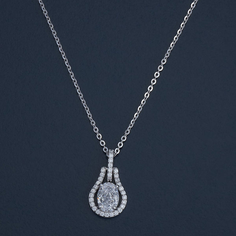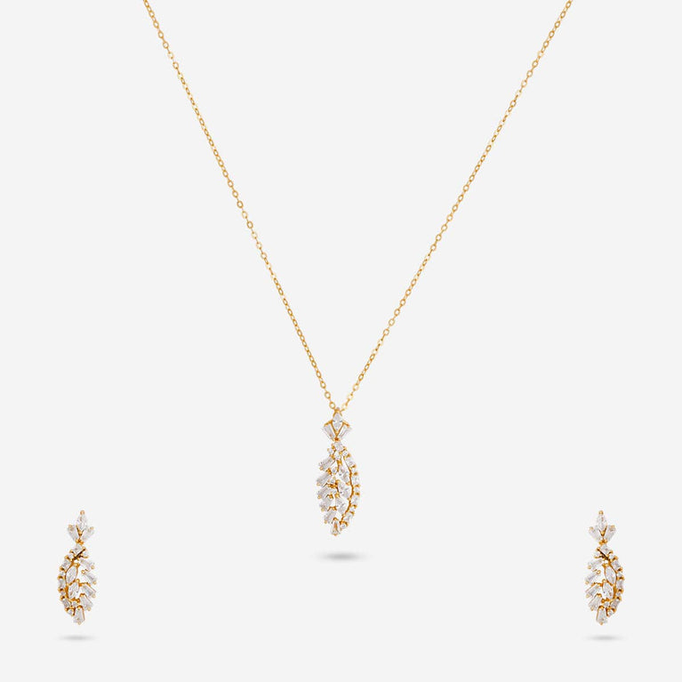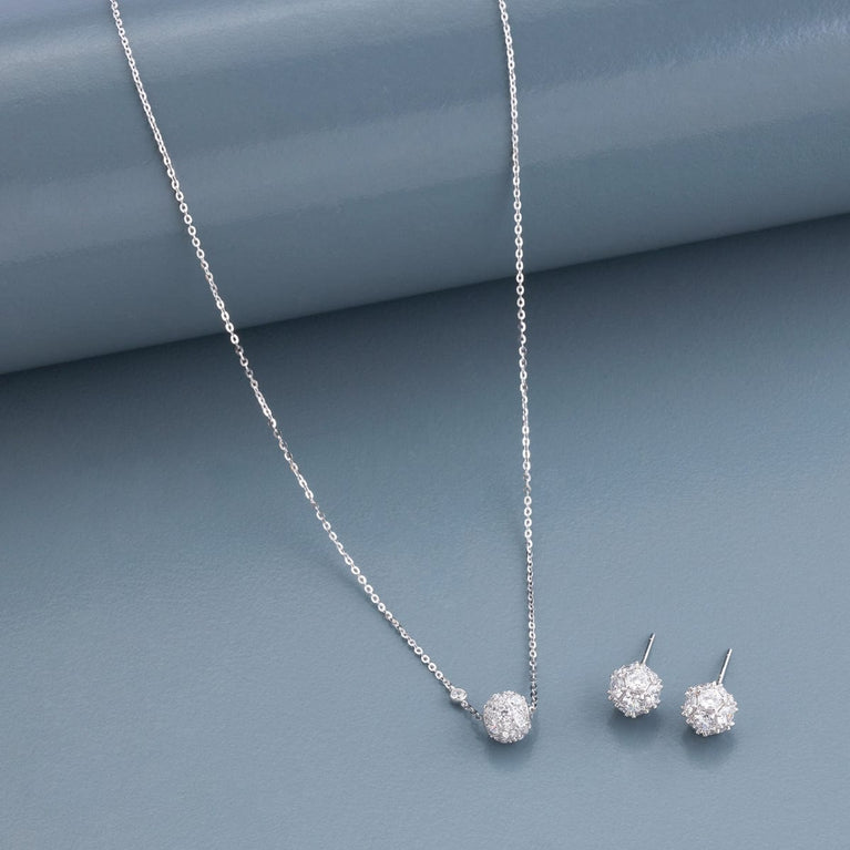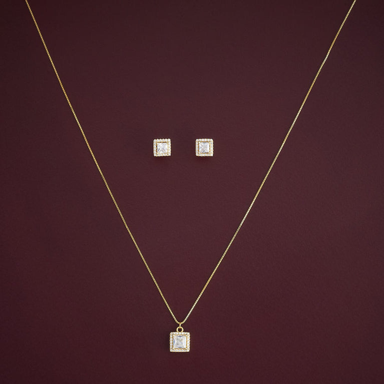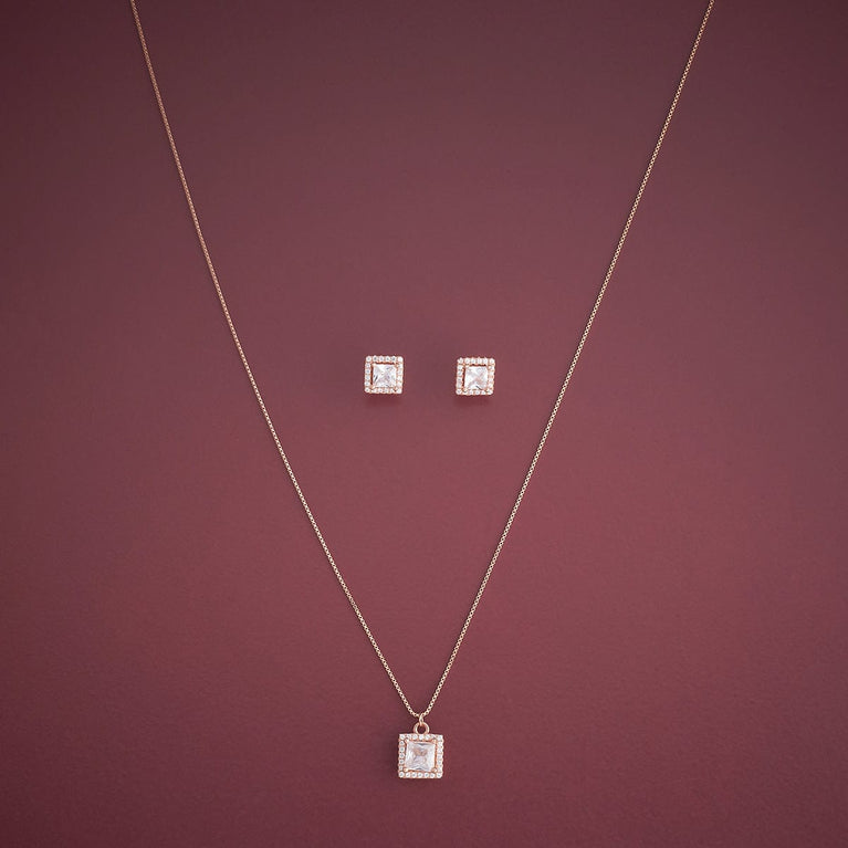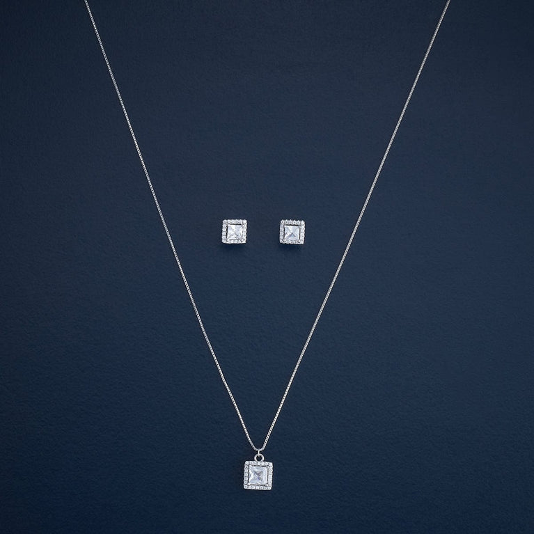 92.5 Silver Pendant With Chain and Earring Set 191388