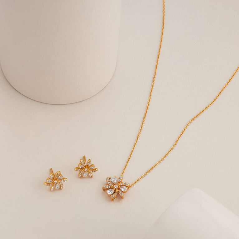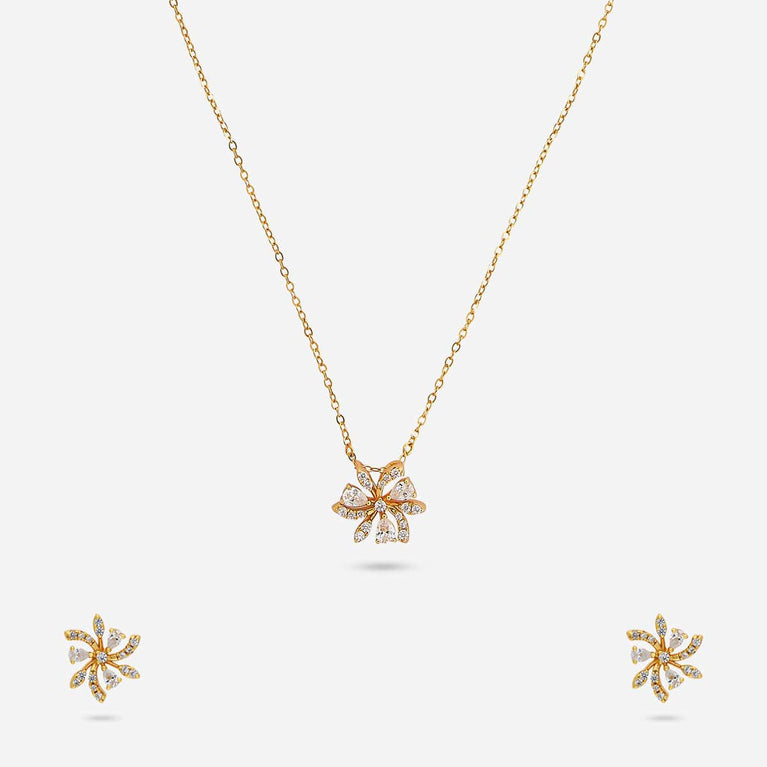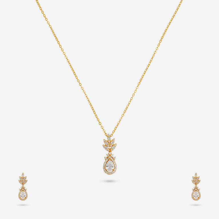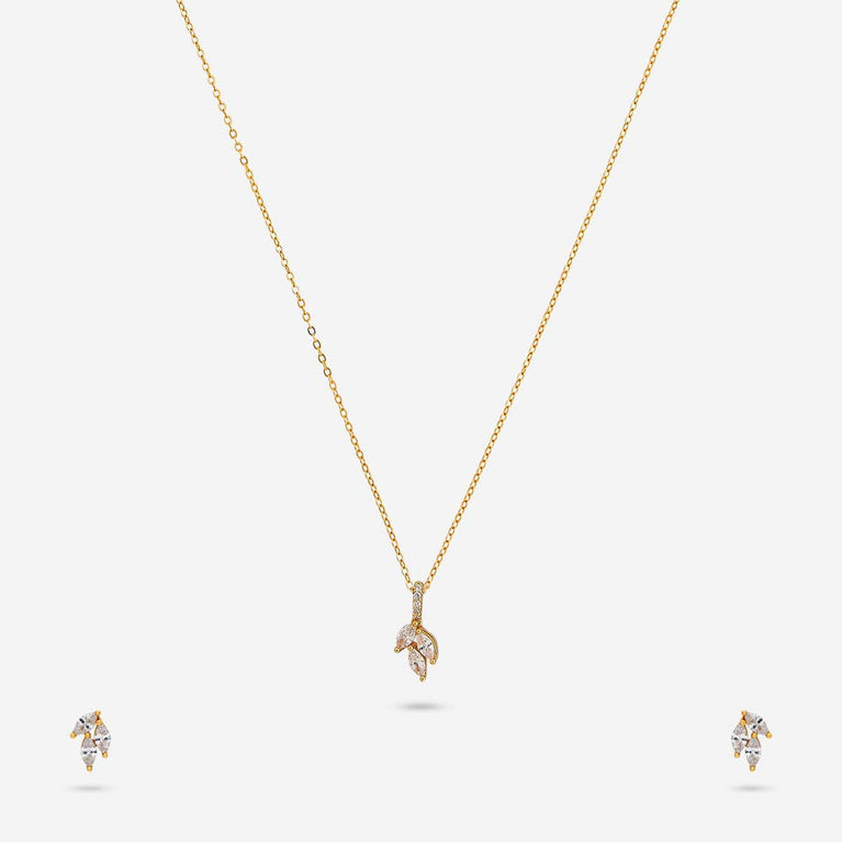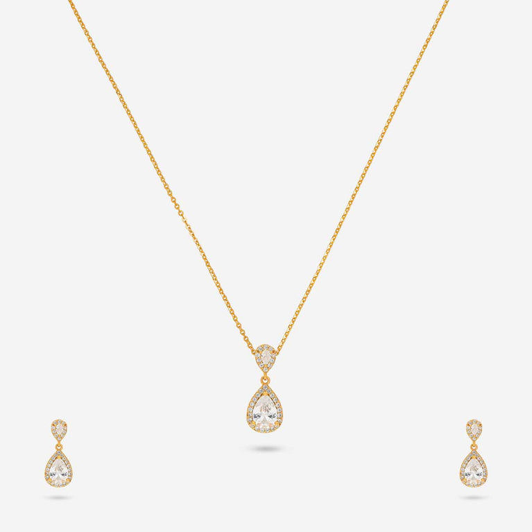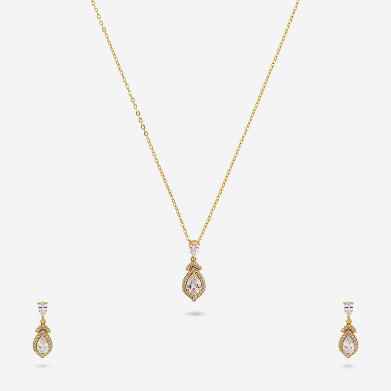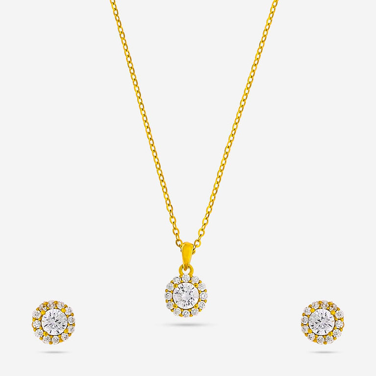 92.5 Silver Pendant With Chain and Earring Set 191388