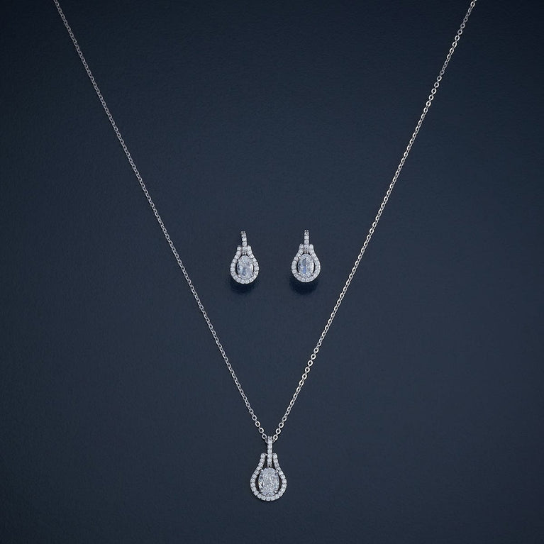 92.5 Silver Pendant With Chain and Earring Set 194168