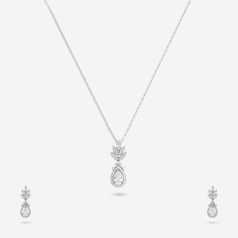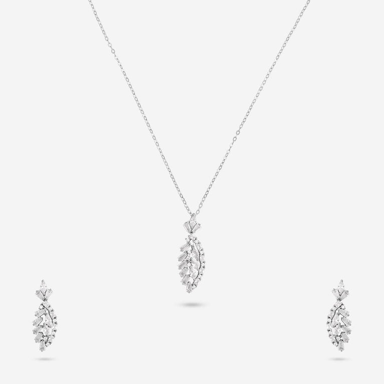 92.5 Silver Pendant With Chain and Earring Set 194165