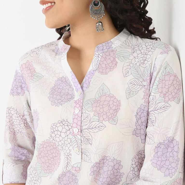 Band Neck Printed Short Kurti