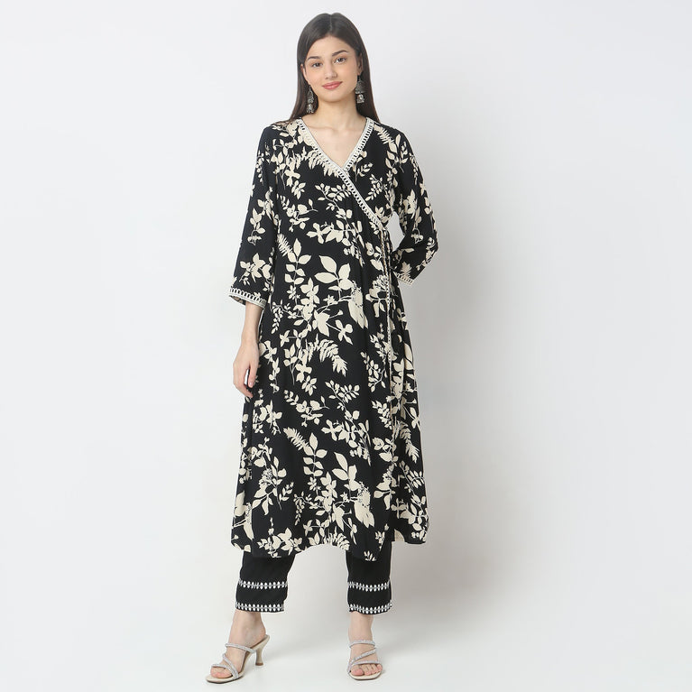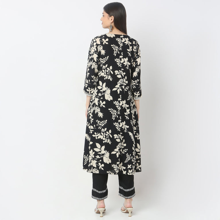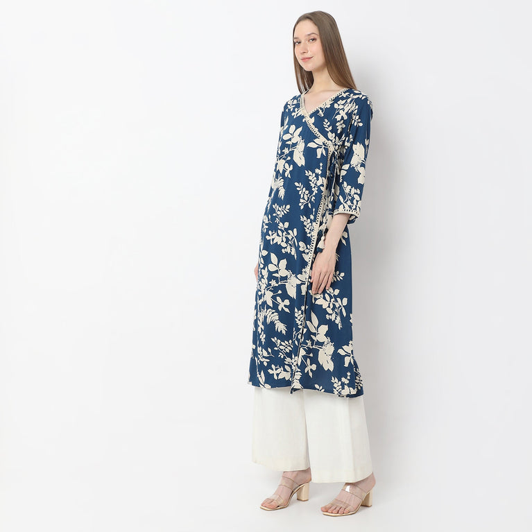 A-Line Printed Knee Length V-Neck Flared Kurta