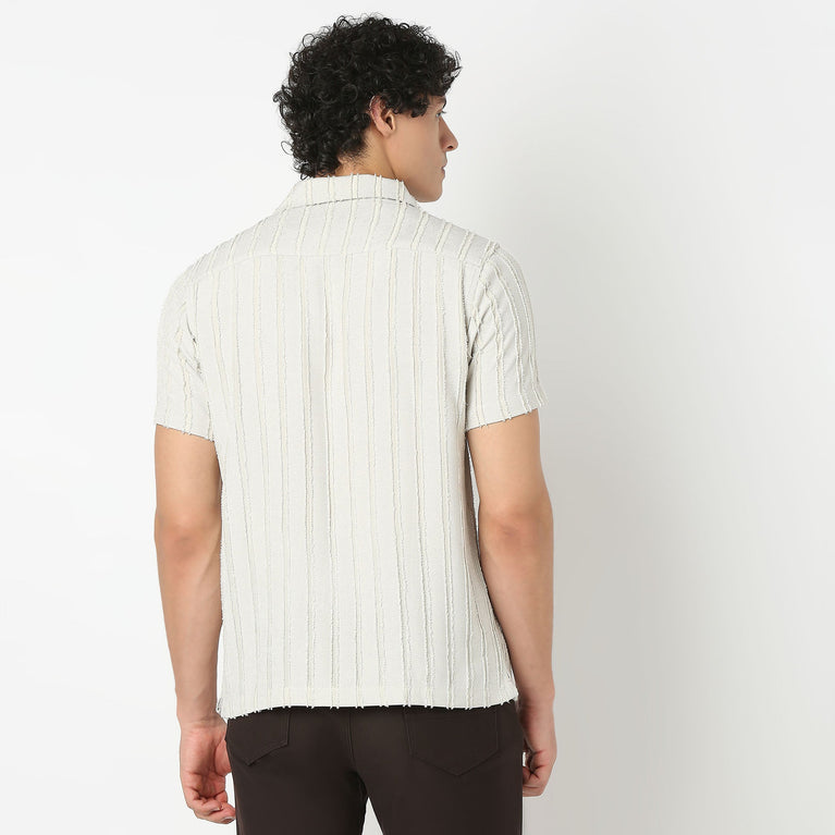 Camp Collar Half Sleeve Striped Structured Solid Bae Shirt