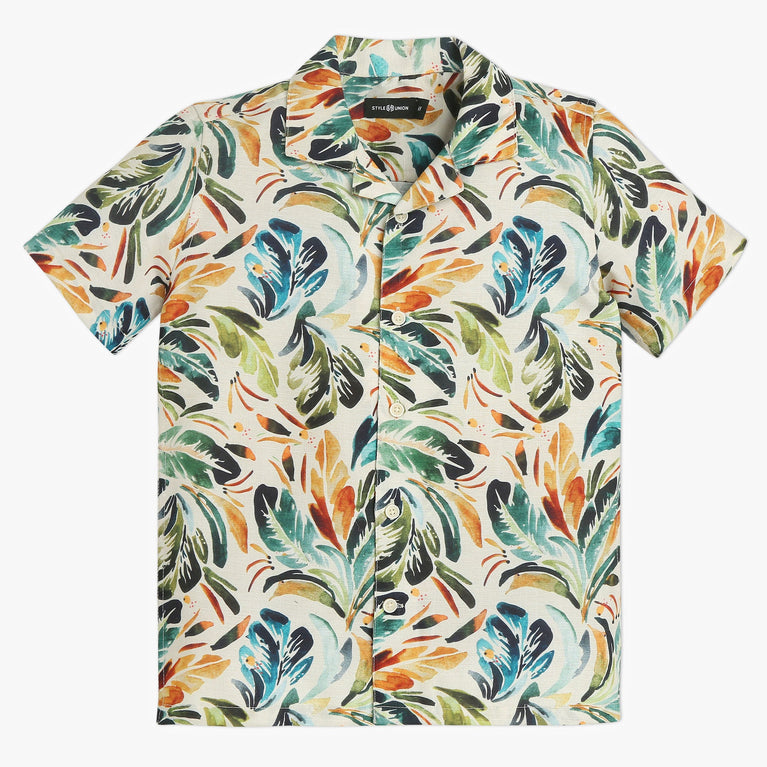 Experience the perfect blend of comfort and style with this boys' regular fit printed camp collar shirt. Crafted from 100% Polyester, this shirt offers a soft and breathable feel, making it ideal for all-day wear. The vibrant printed pattern adds a playful touch, perfect for any casual outing or family gathering.
