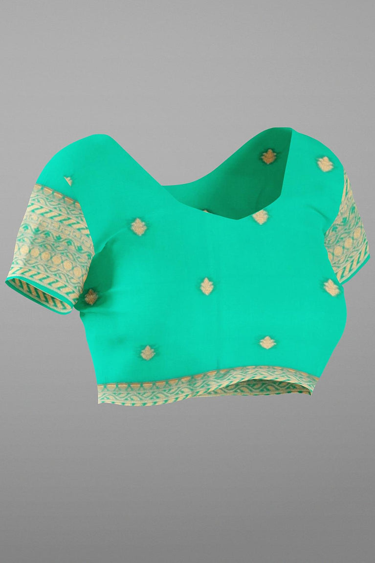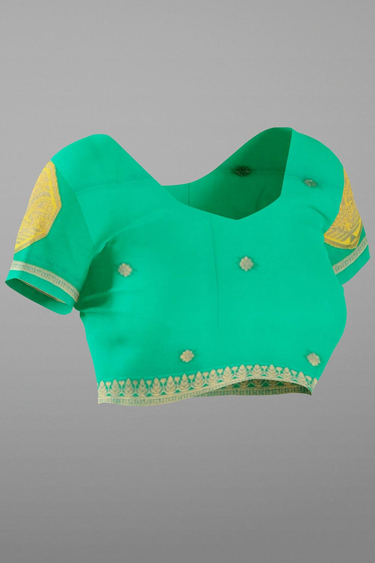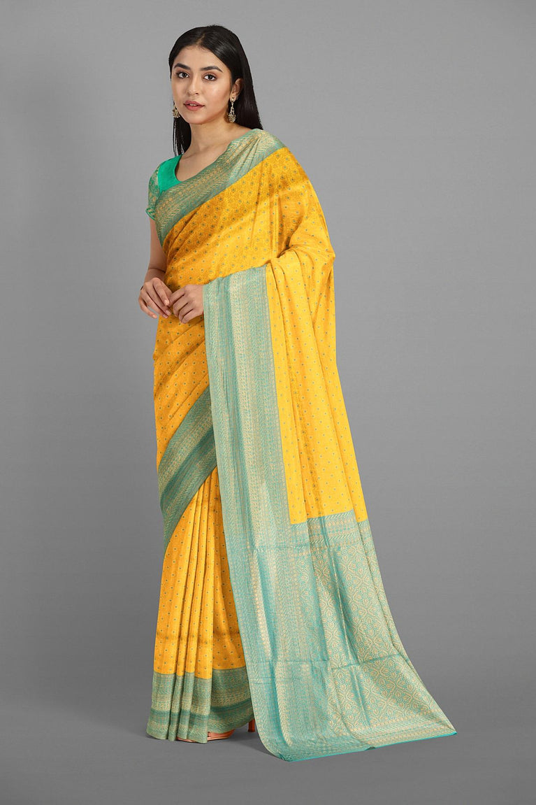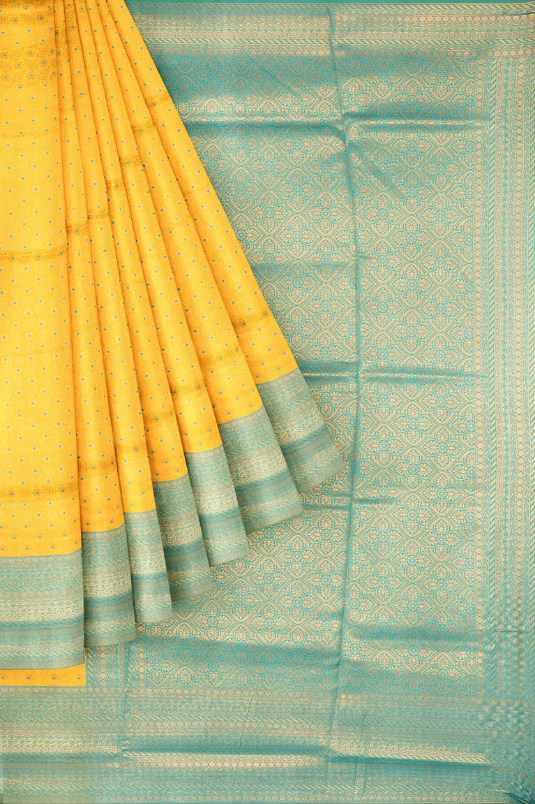 YELLOW and SEA GREEN BROCADE BUTA SILK Saree with KANCHIPURAM