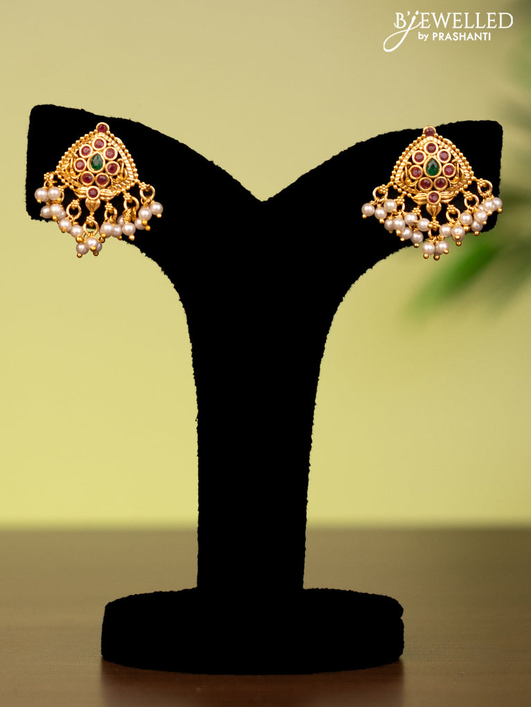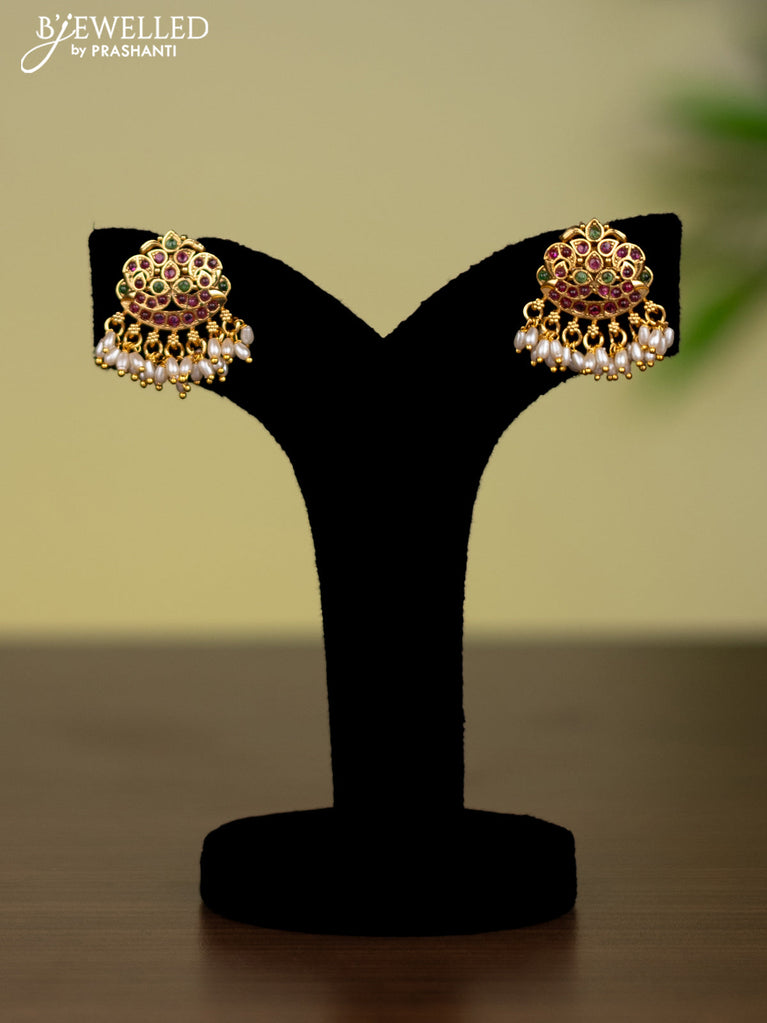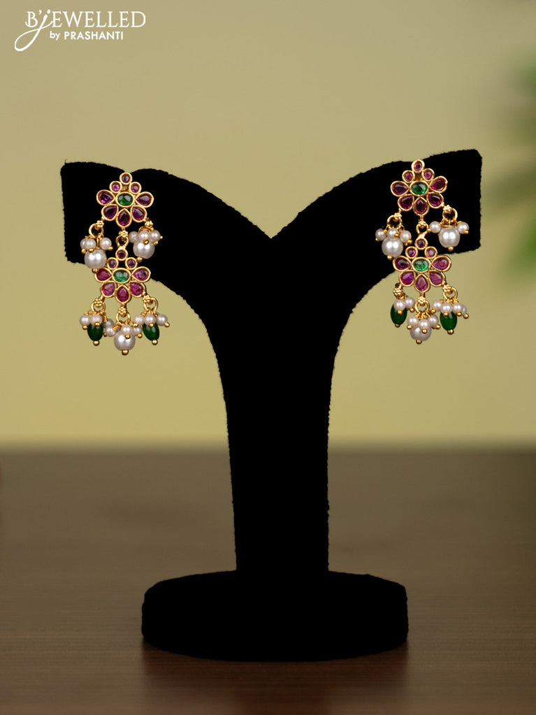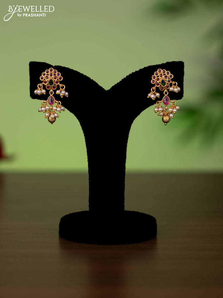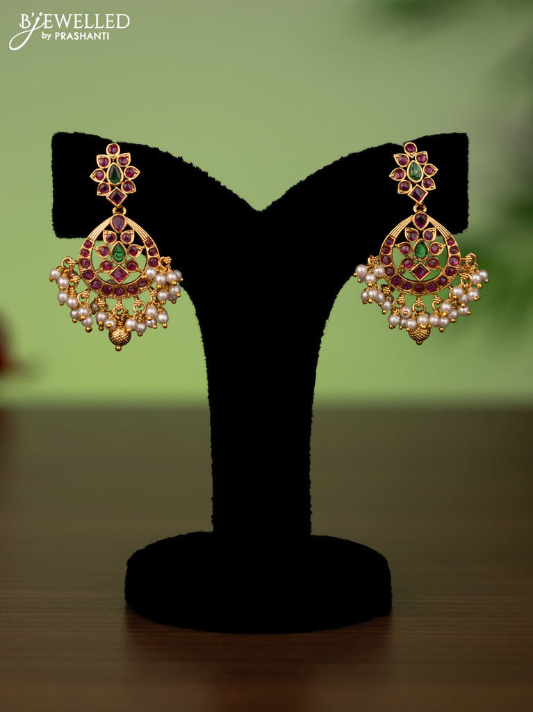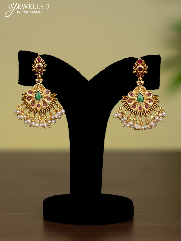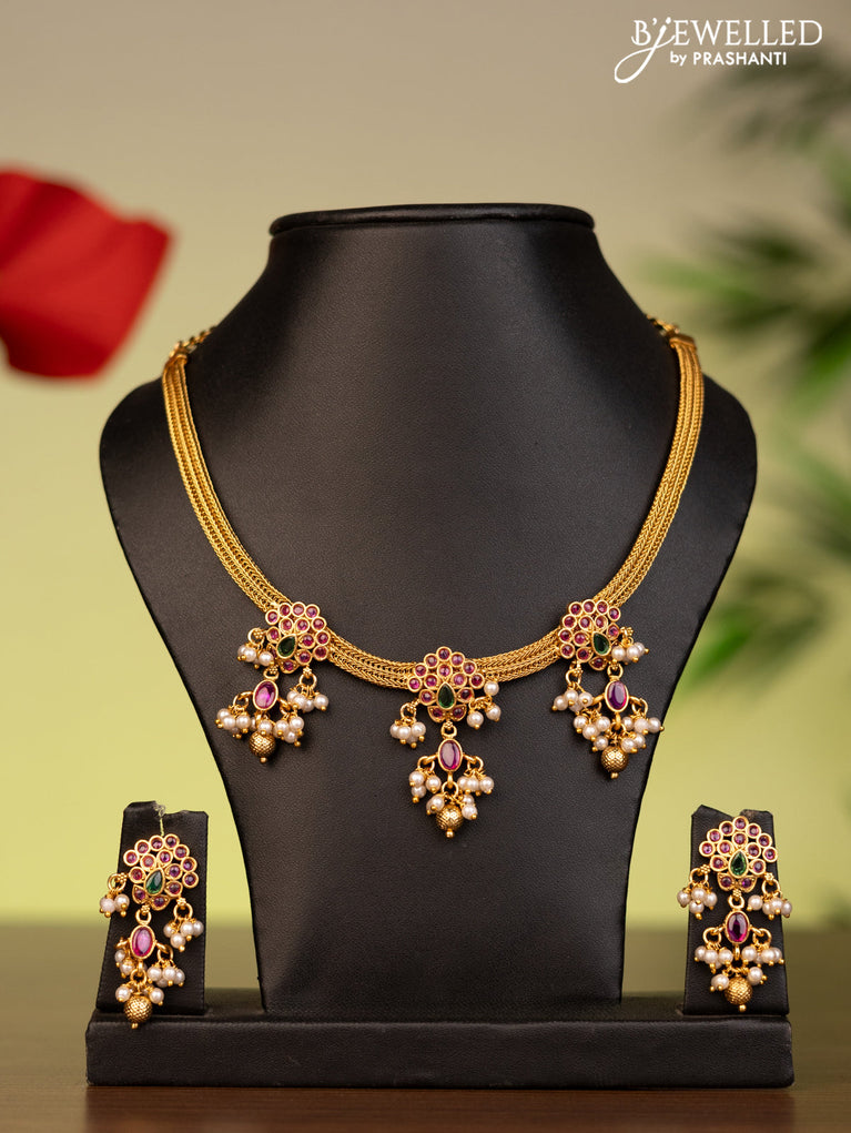 Antique attigai necklace with kemp stones and pearl hanging without earring
