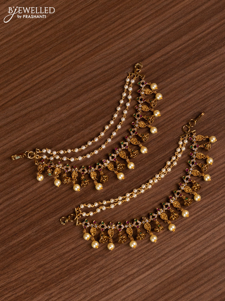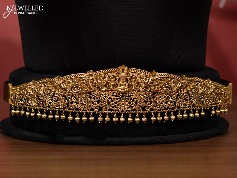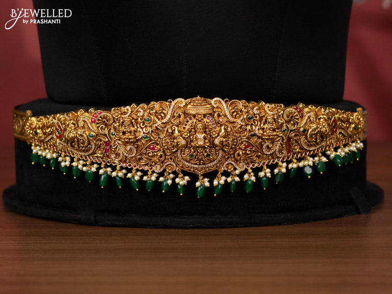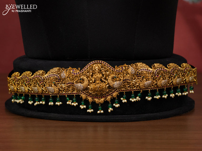 Antique bridal set lakshmi design with kemp cz stones and pearl & golden beads hanging