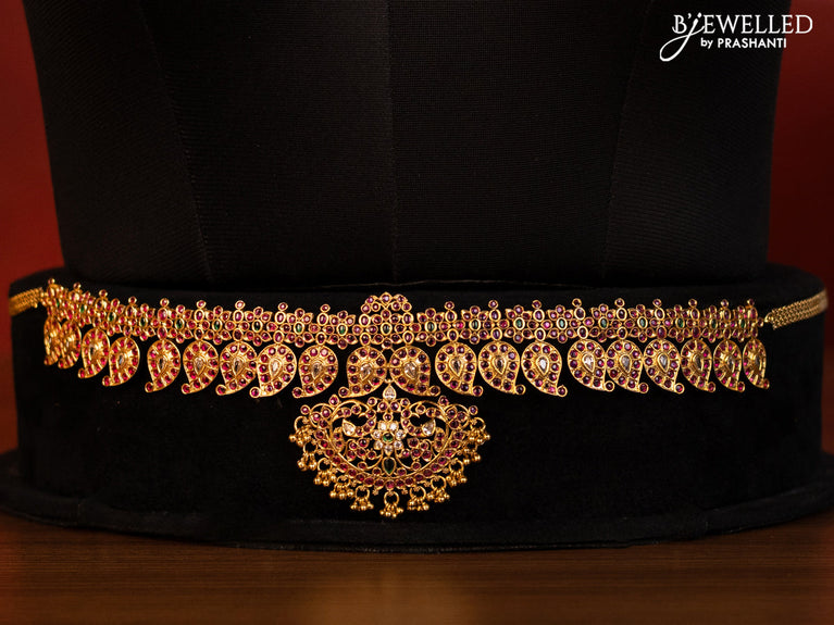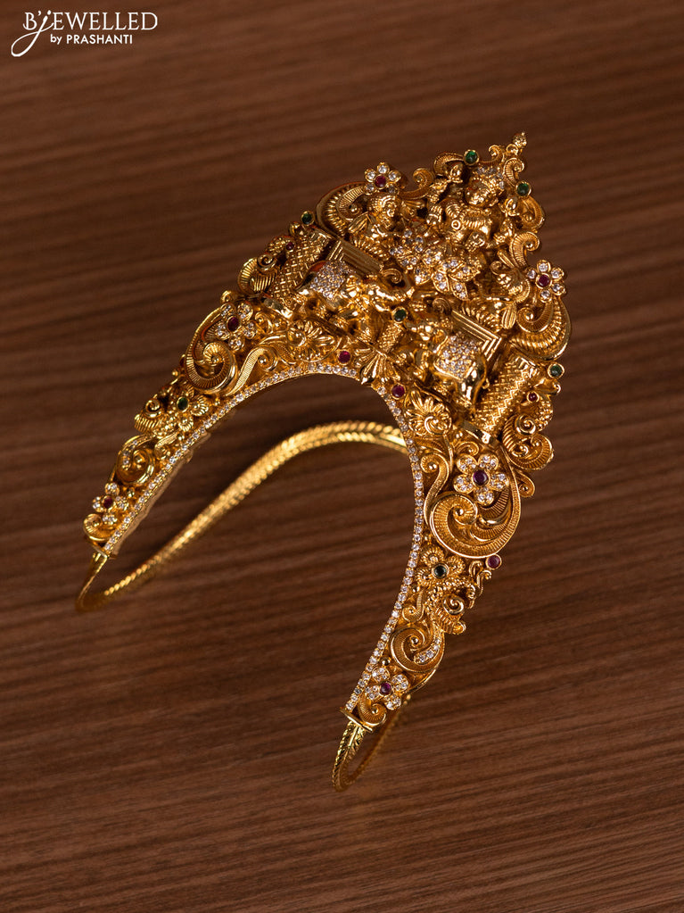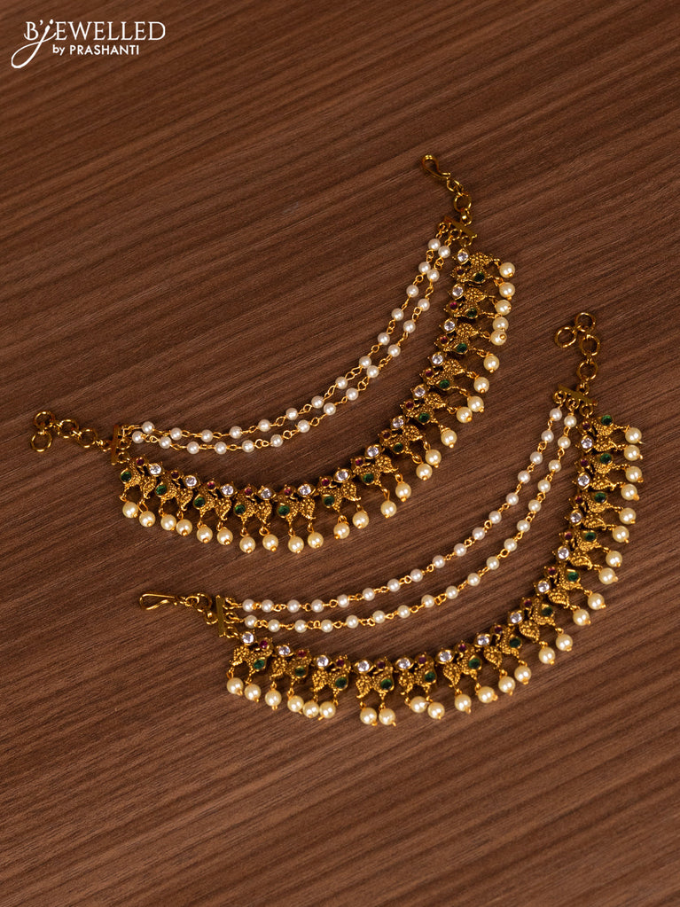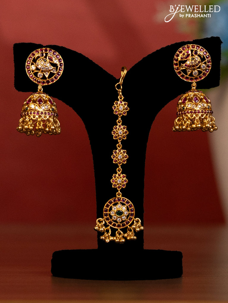 Antique bridal set manga pattern with kemp & cz stones and golden beads hanging