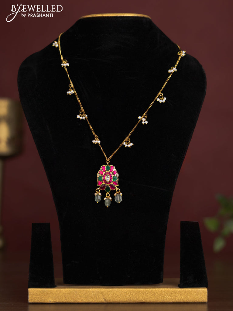 Antique chain with a floral pendant, jadau kundan stones, and pearl & bead hangings