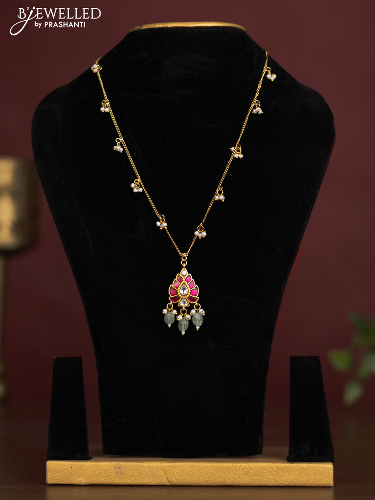 Antique choker floral design with pink kemp & cz stones and pearl & golden beads hanging without earrings