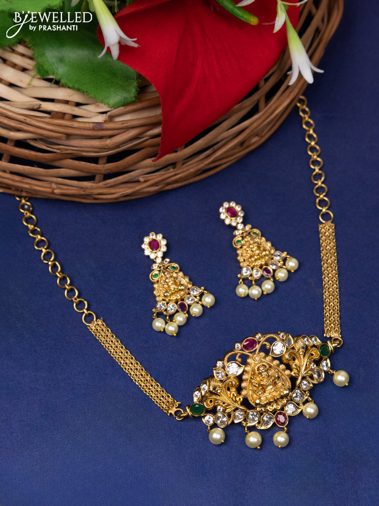 Antique choker lakshmi design with kemp & cz stones pearl hangings without earrings