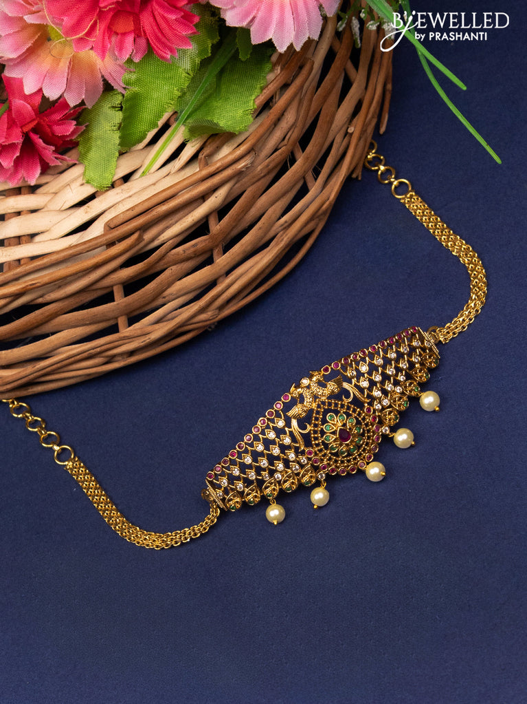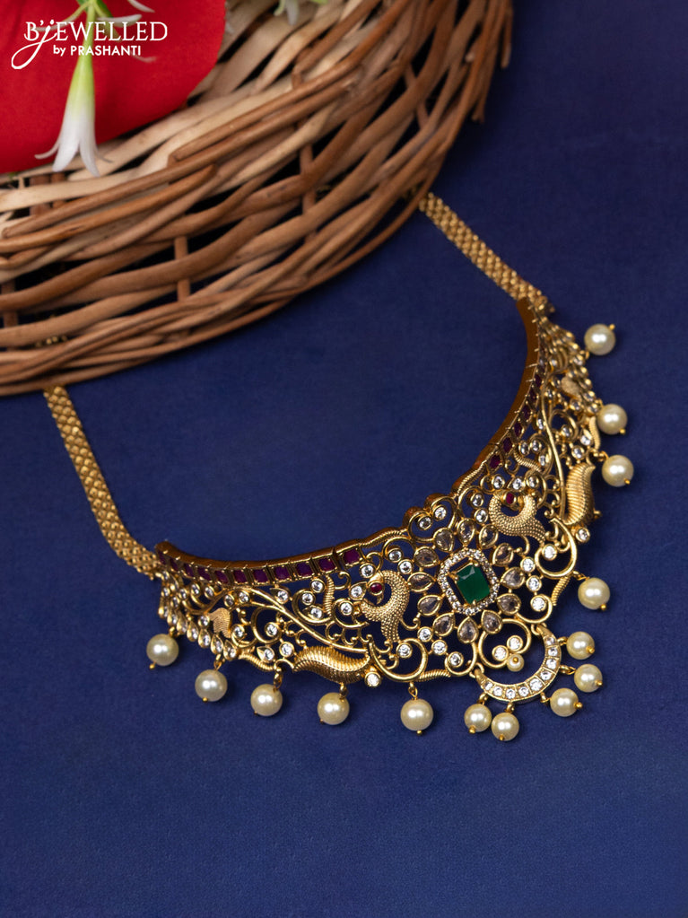 Antique choker peacock design with kemp & cz stones and pearl hangings