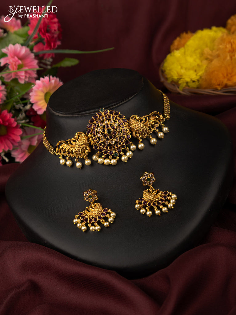 Antique choker peacock design with kemp & cz stones and pearl hangings without earrings