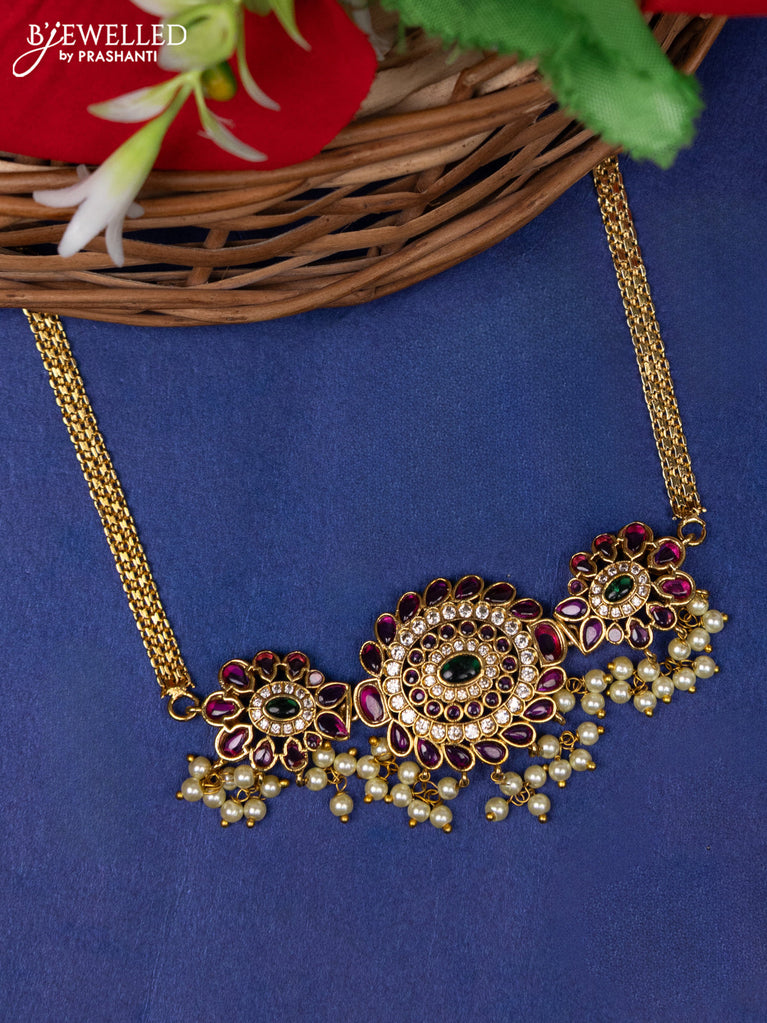 Antique choker with lakshmi design pendant and pearl hangings without earrings