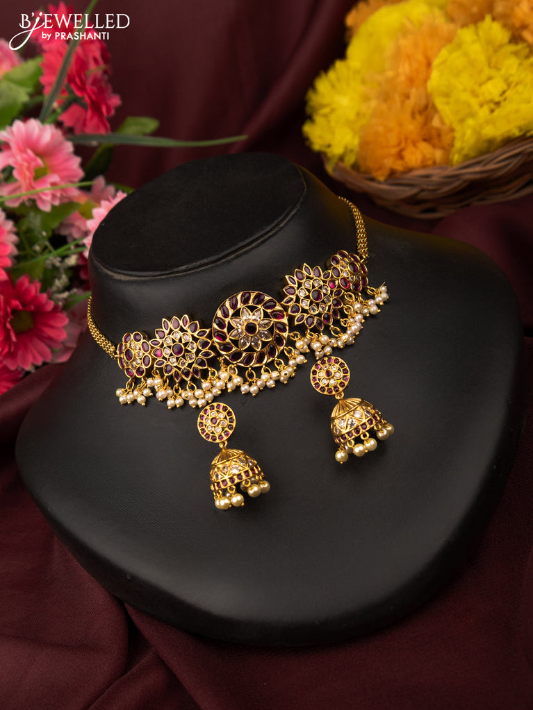 Antique choker with kemp & cz stone and pearl hanging without earring