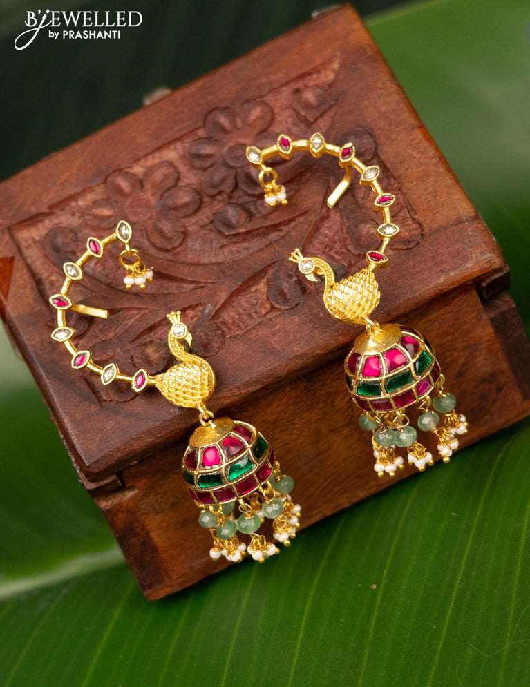 Antique earcuff jhumka peacock design with cz,kemp stones and pearl hangings