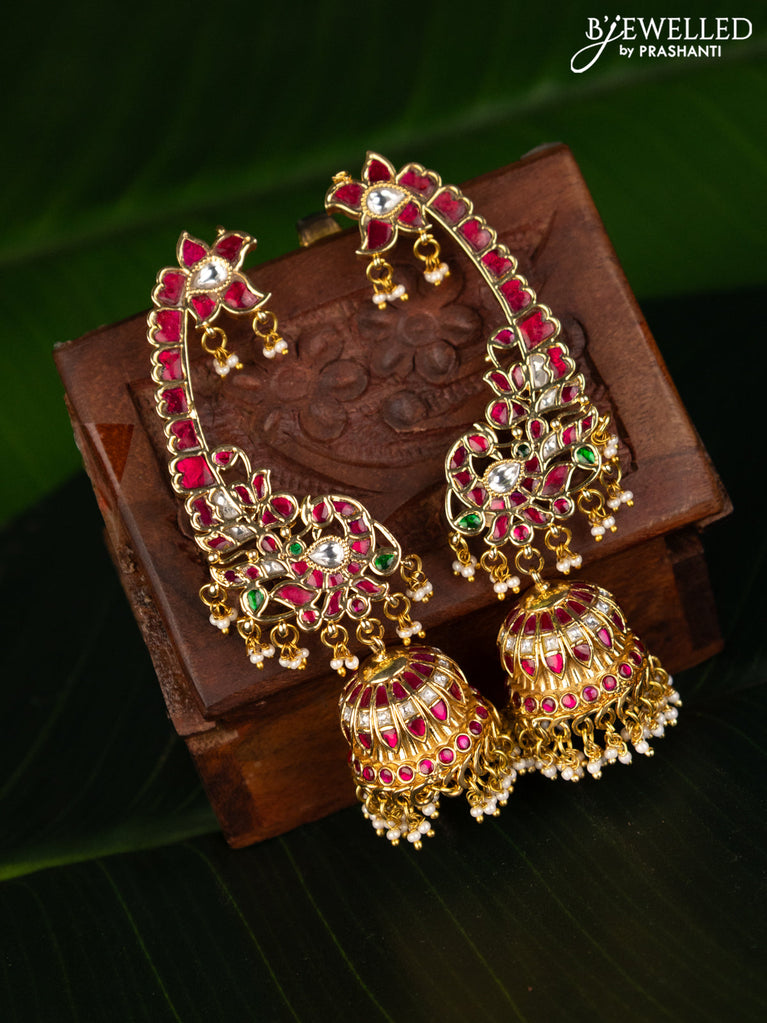 Antique earcuff jhumka with jadau kundan stones and pearl & beads hanging