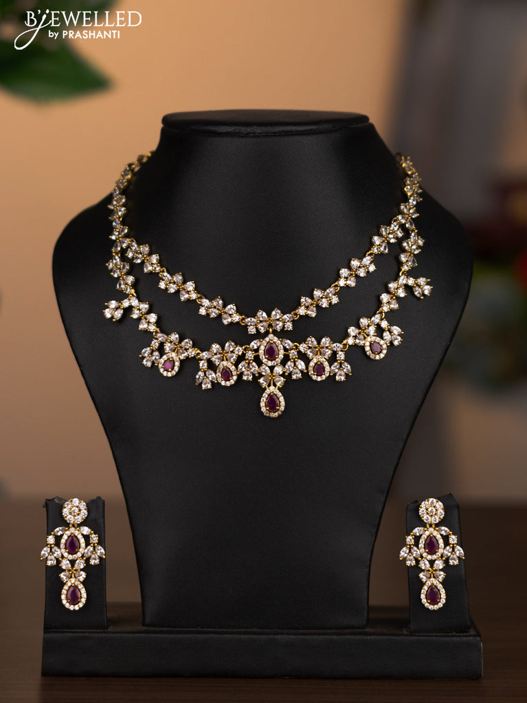 Antique double layer haaram with kemp & cz stones and golden beads hanging