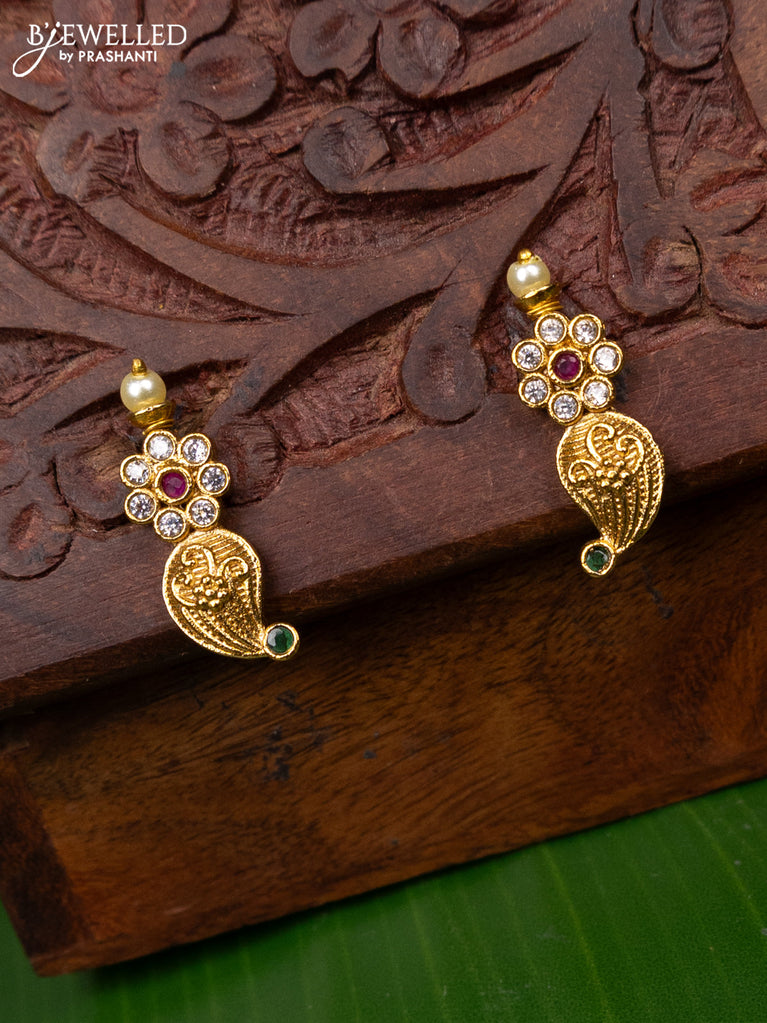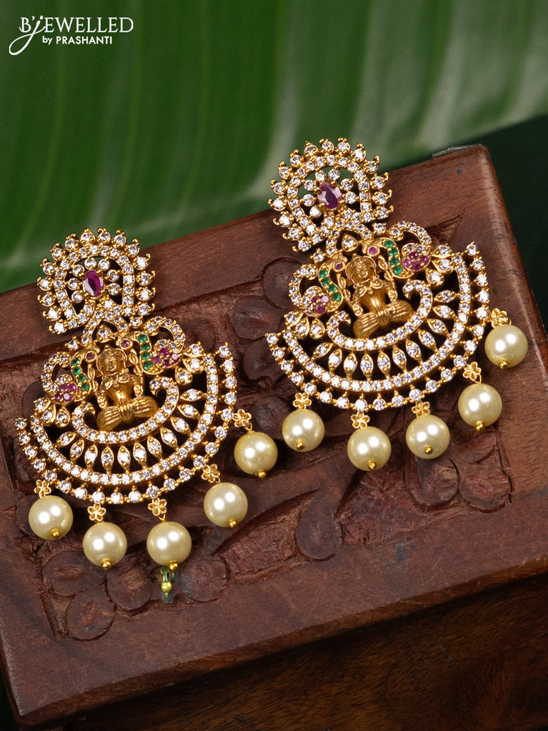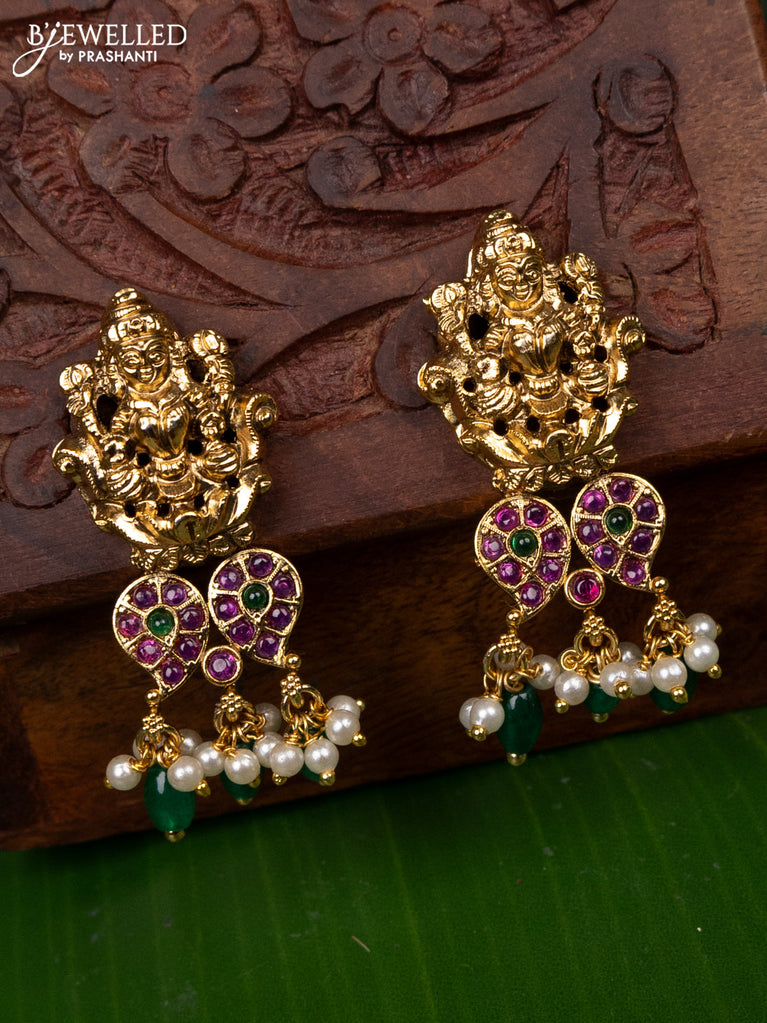 Antique earring lakshmi design with kemp & cz stones and pearl hangings