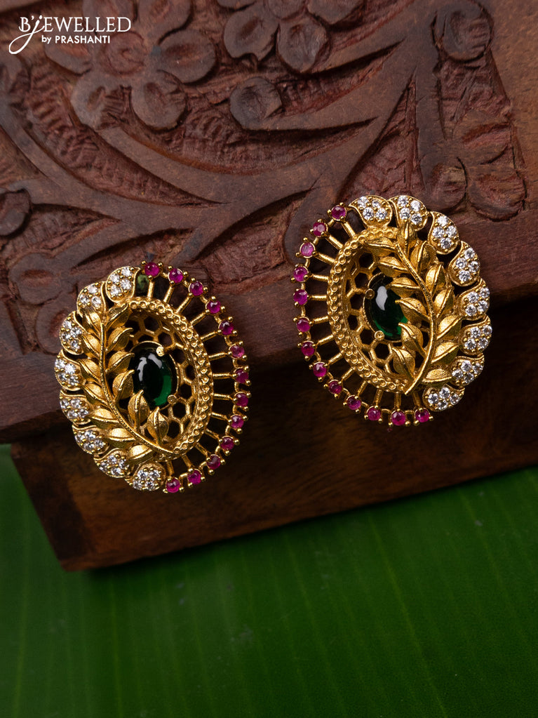 Antique earring lakshmi design with kemp & cz stones and golden beads hanging