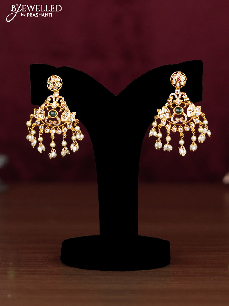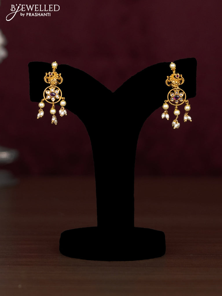 Antique guttapusalu necklace peacock & manga design with kemp & cz stones and pearl hangings