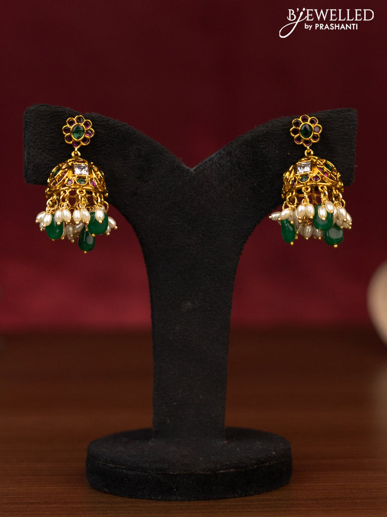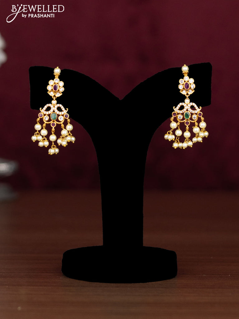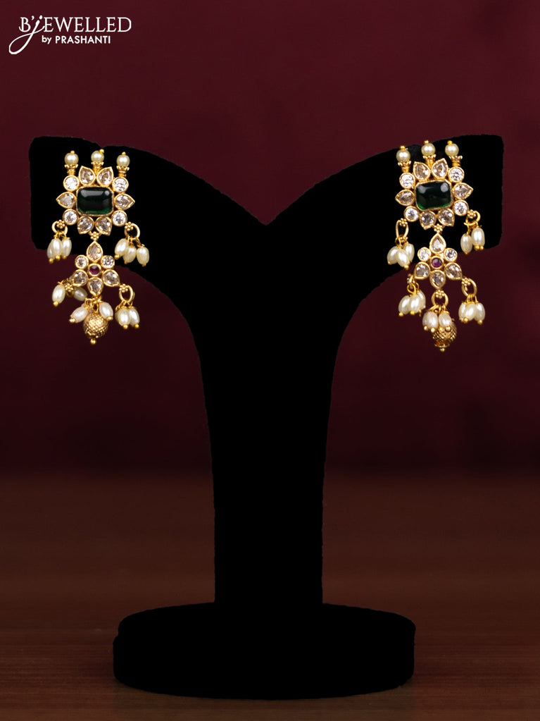 Antique guttapusalu necklace manga pattern with kemp & cz stones and pearl & beads hanging