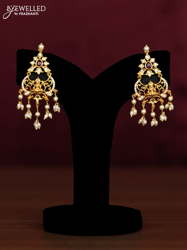 Antique guttapusalu necklace lakshmi design with kemp & cz stones and pearl hangings