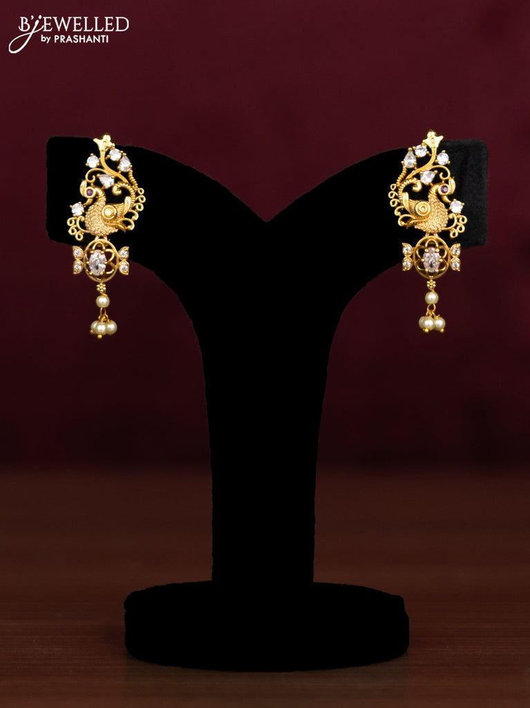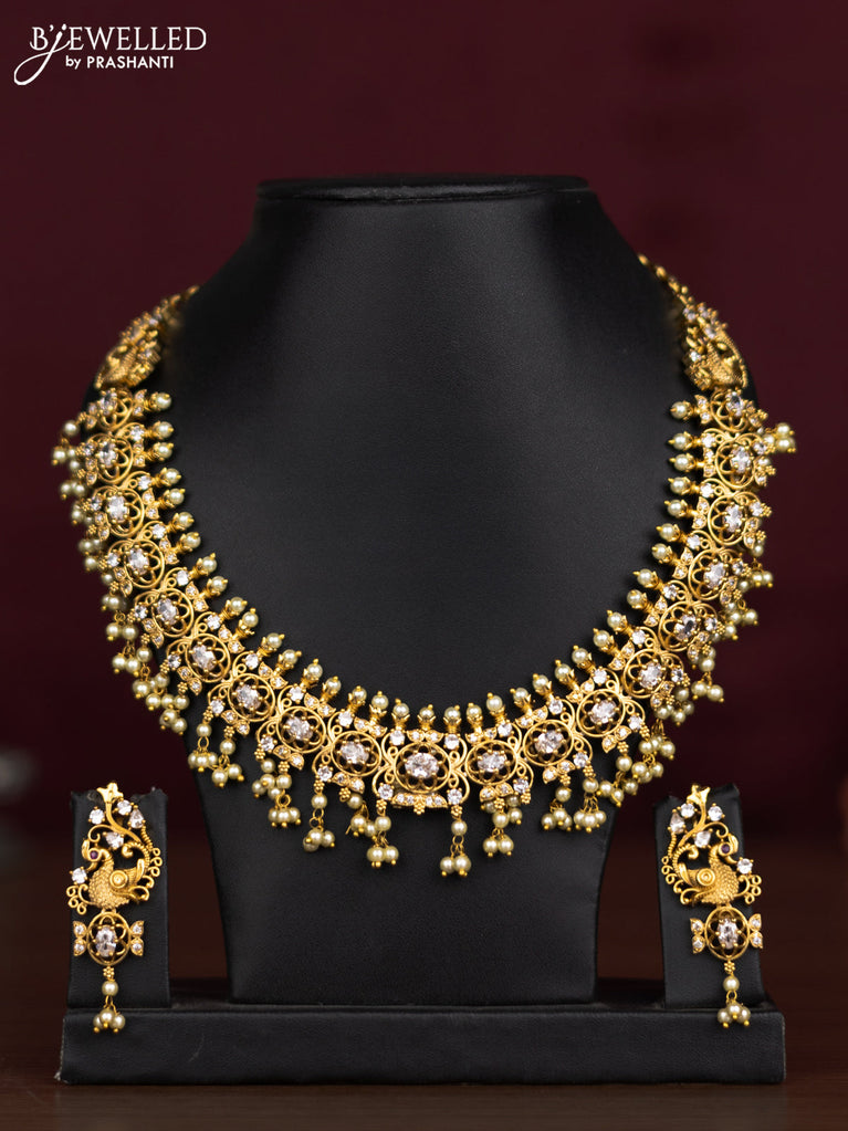 Antique guttapusalu necklace peacock design with kemp & cz stones and pearl hangings
