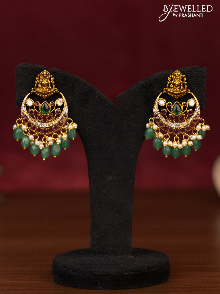 Antique guttapusalu necklace lakshmi pendant with kemp & cz stones and pearl & beads hanging