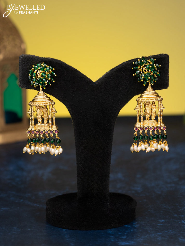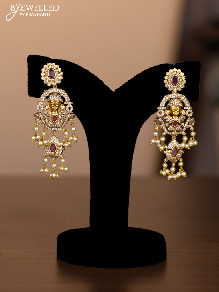Antique guttapusalu necklace tirupati balaji pendant with pink kemp & cz stones and pearl hangings