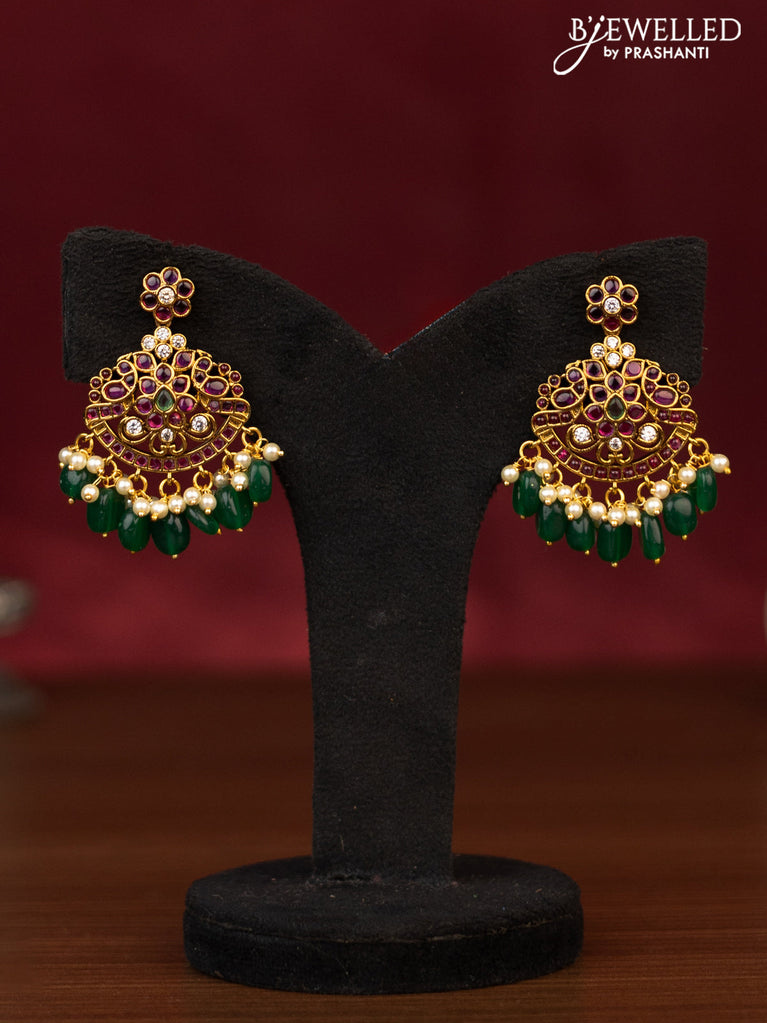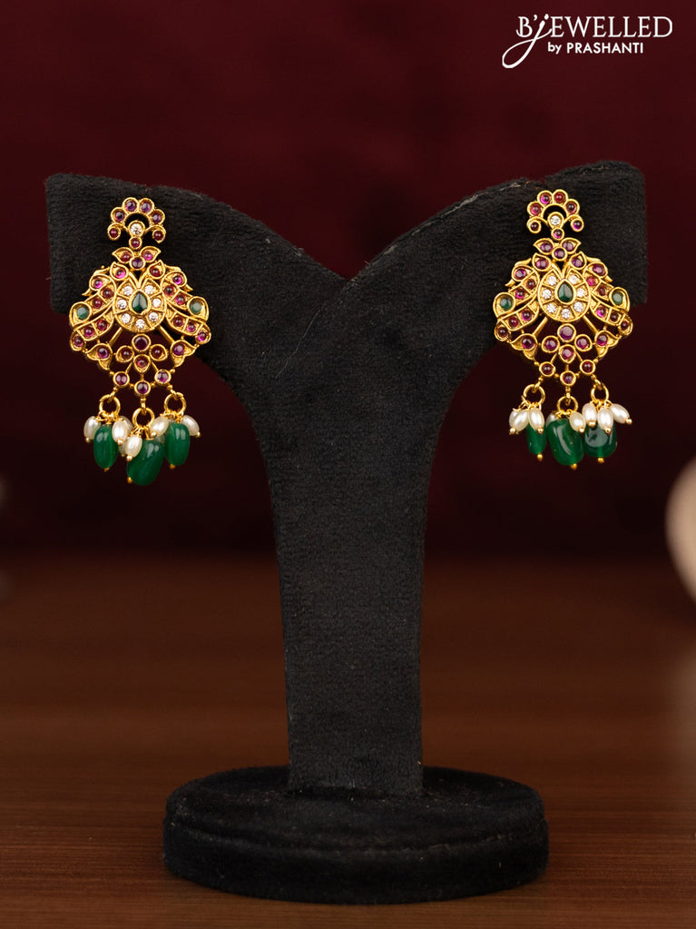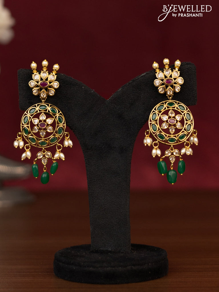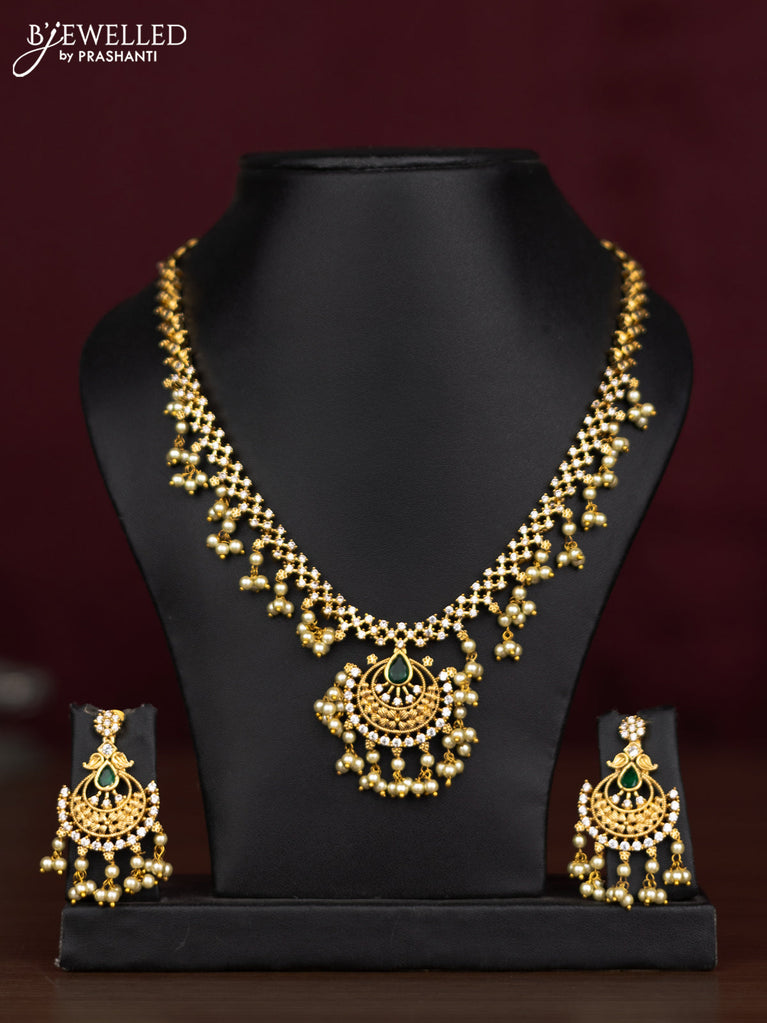 Antique guttapusalu necklace with emerald & cz stones and pearl hangings