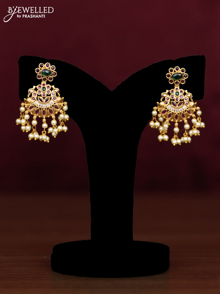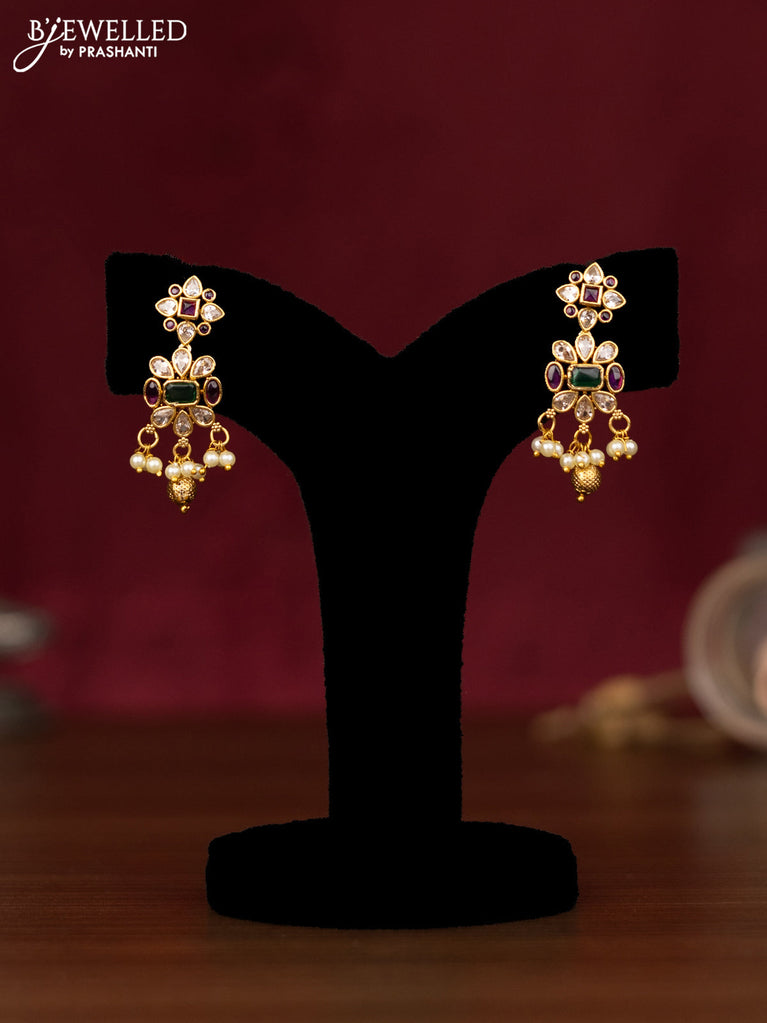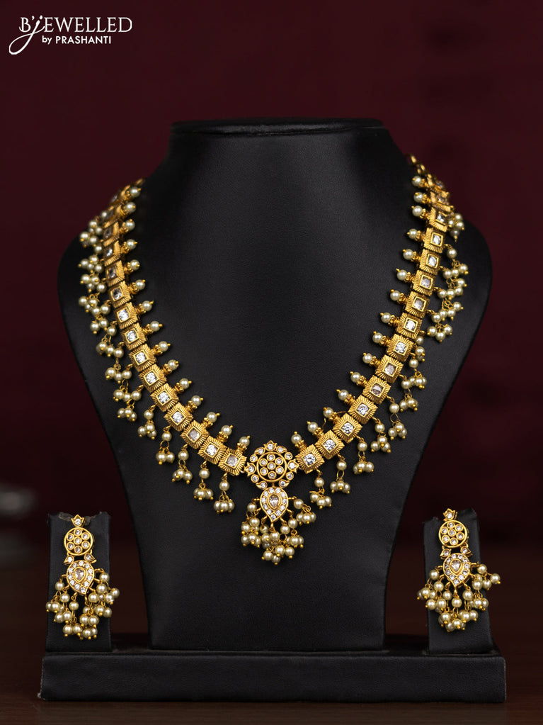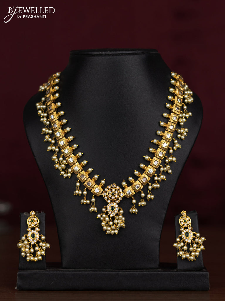 Antique guttapusalu necklace with kemp & cz stones and pearl & beads hanging
