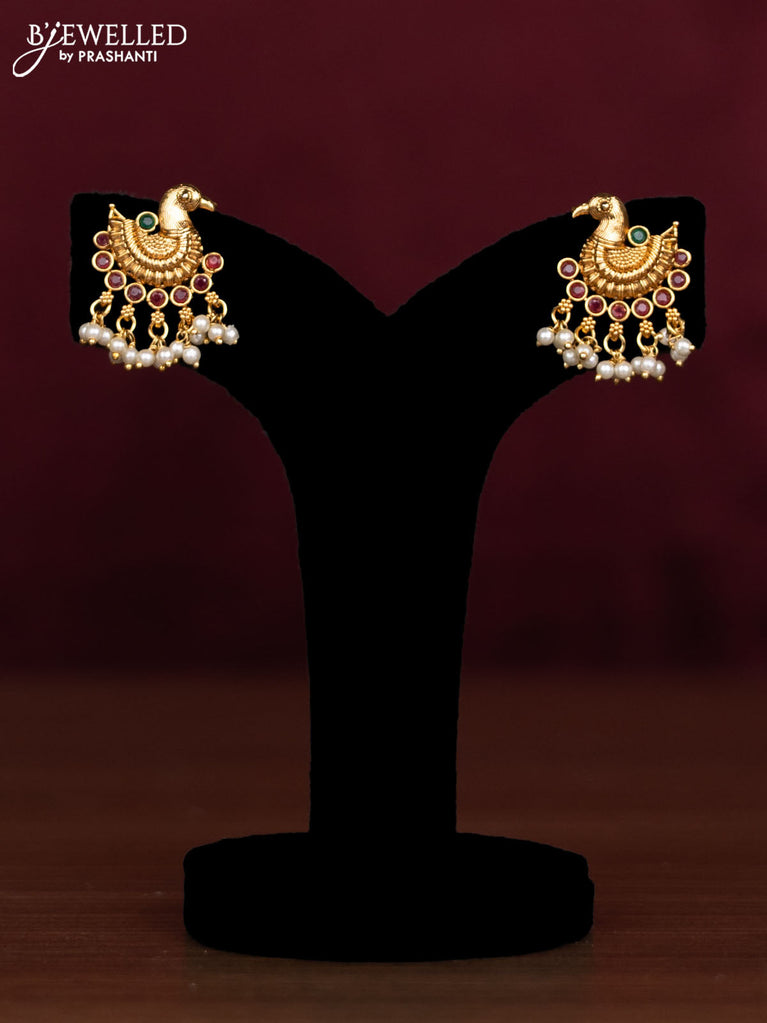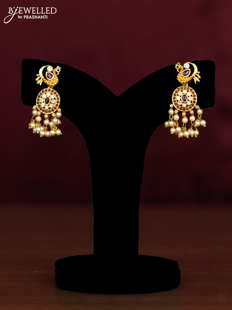 Antique guttapusalu necklace peacock design with kemp & cz stones and pearl hangings