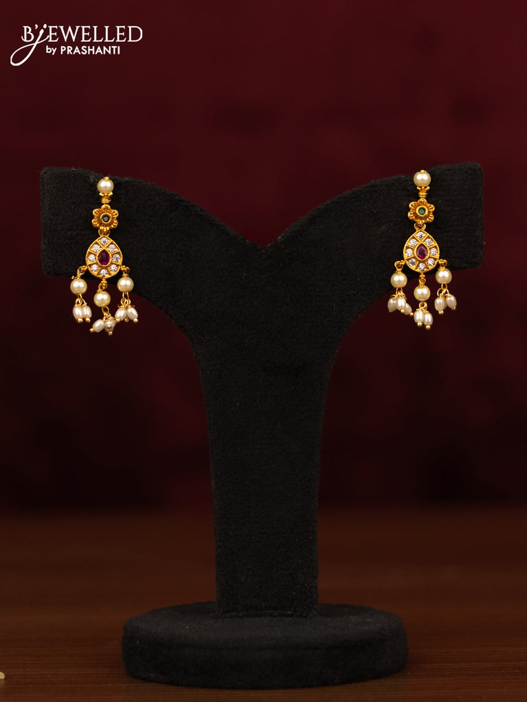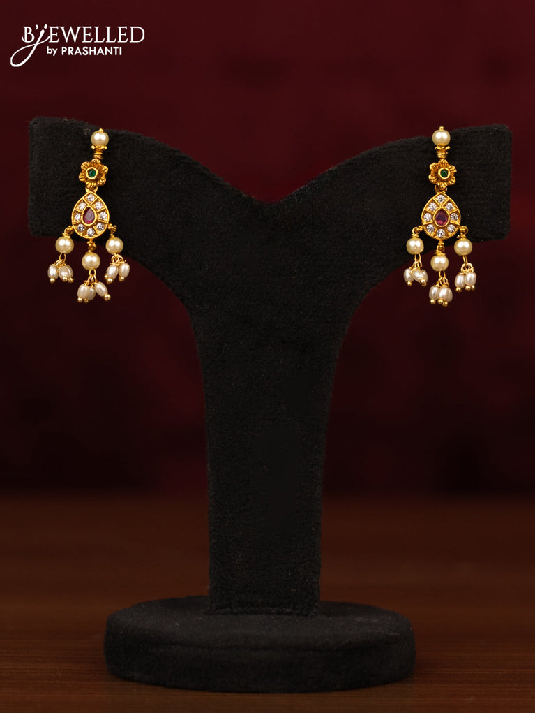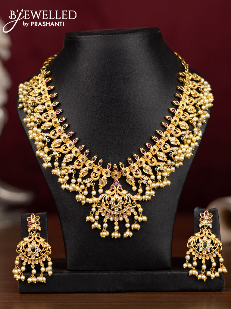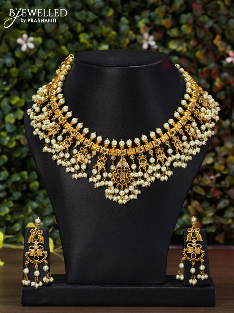 Antique guttapusalu necklace with kemp & cz stones and pearl hangings without earrings