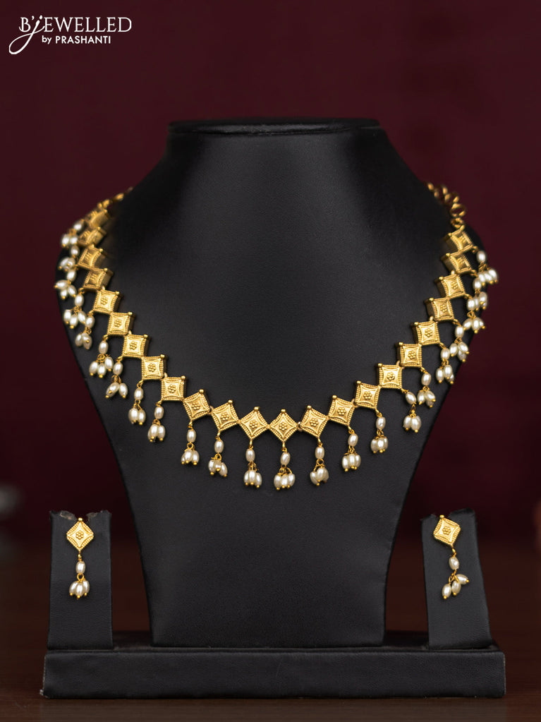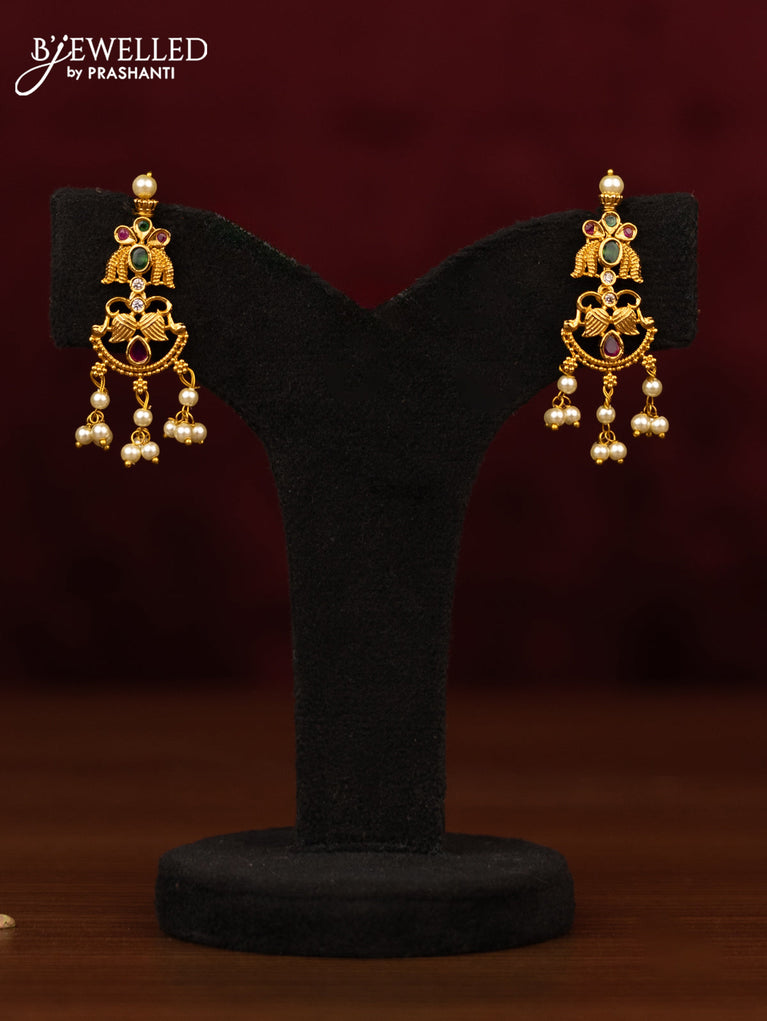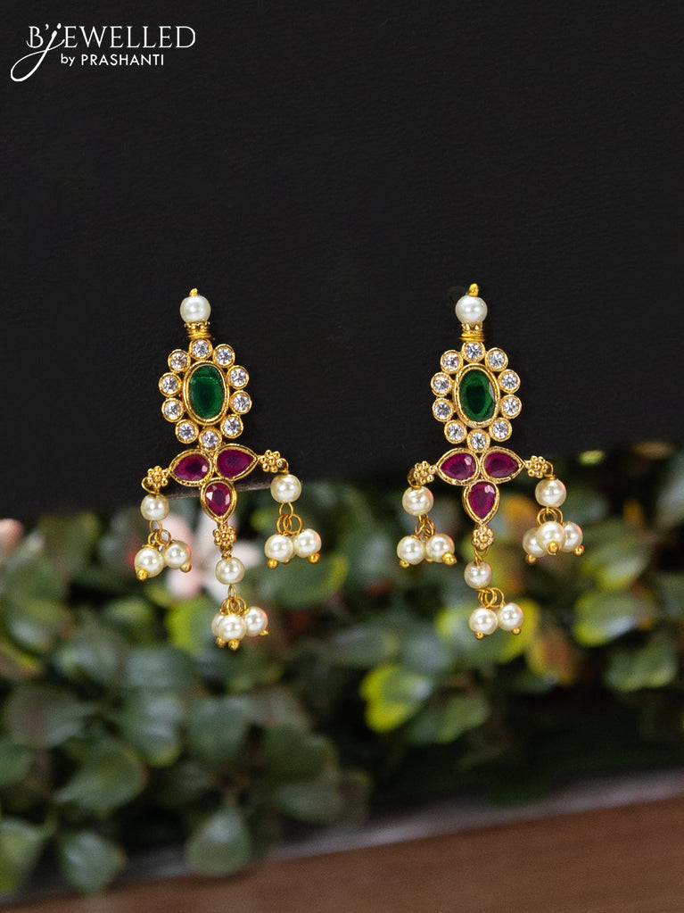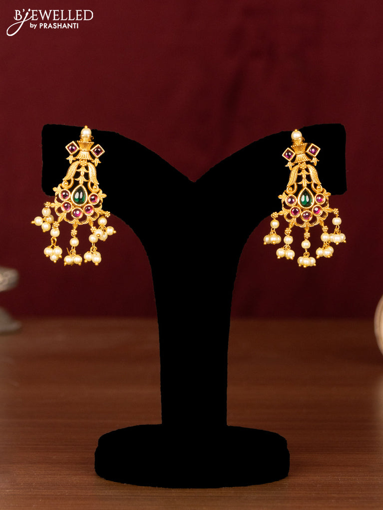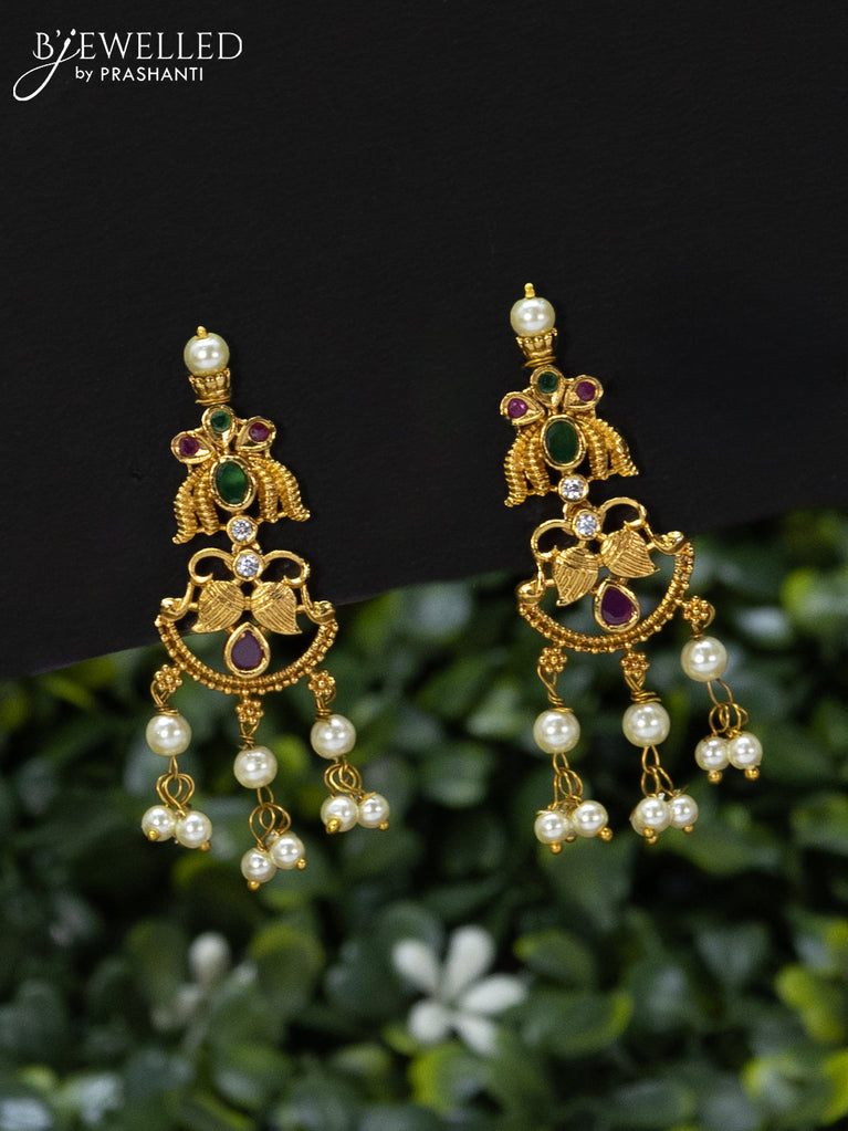 Antique guttapusalu necklace with kemp & cz stones and pearl hangings without earrings