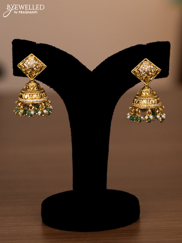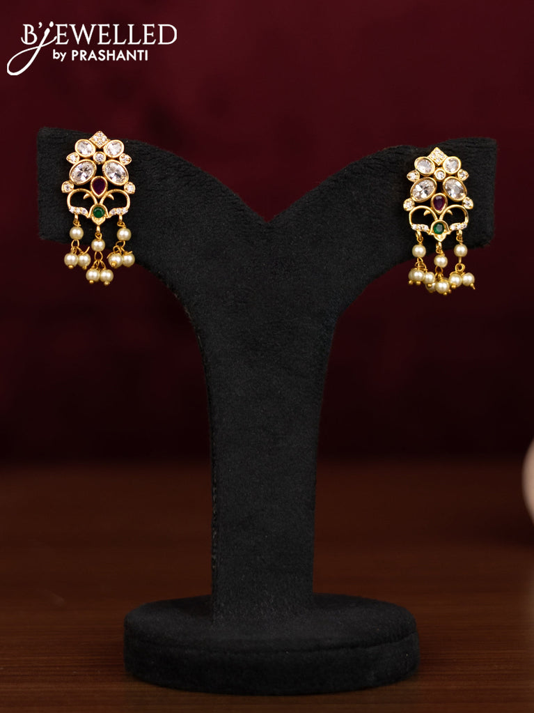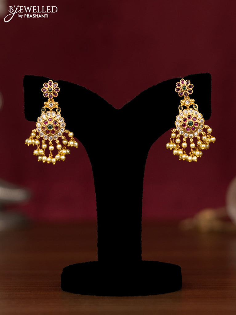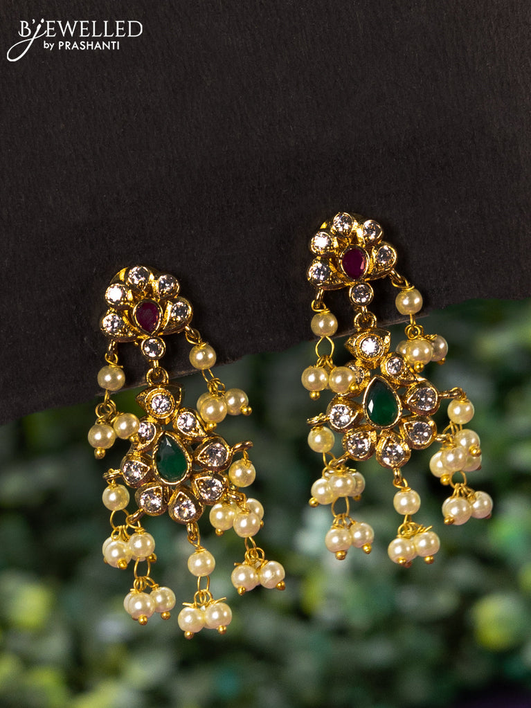 Antique guttapusalu necklace with kemp & cz stones and pearl & golden beads hanging