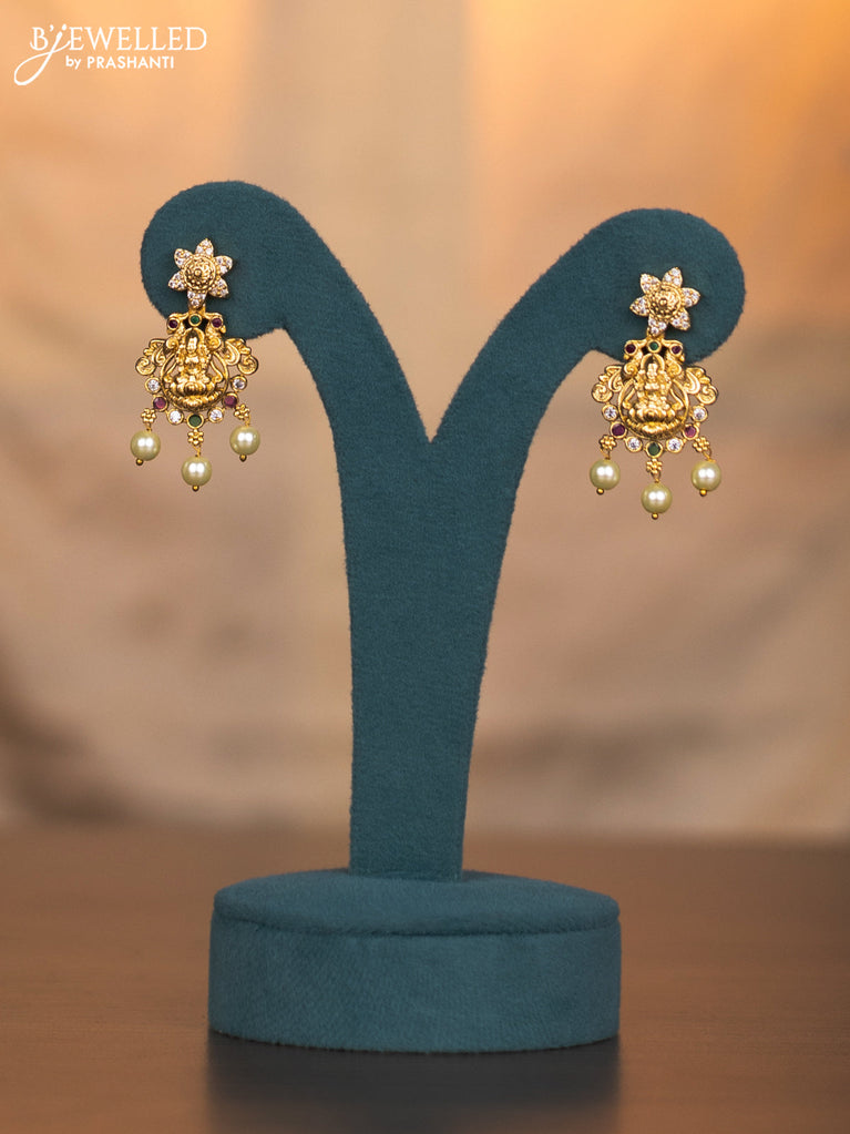 Antique haaram kemp & cz stones with lakshmi pendant and pearl hangings