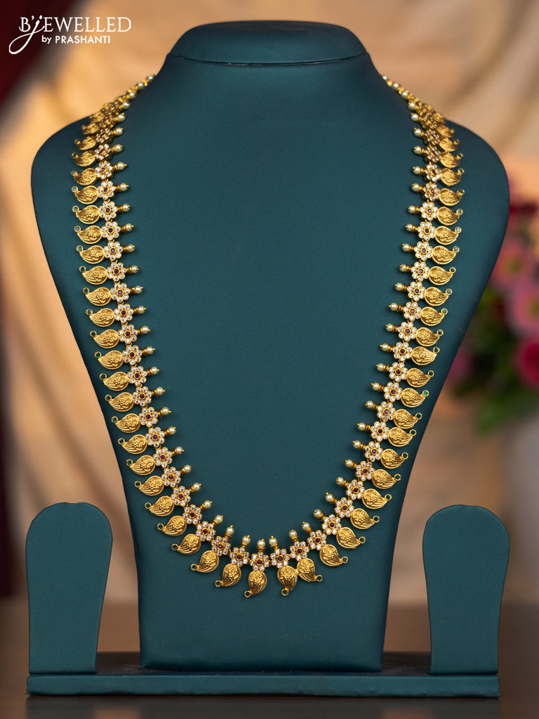 Antique haaram manga pattern with kemp stones and golden beads hanging