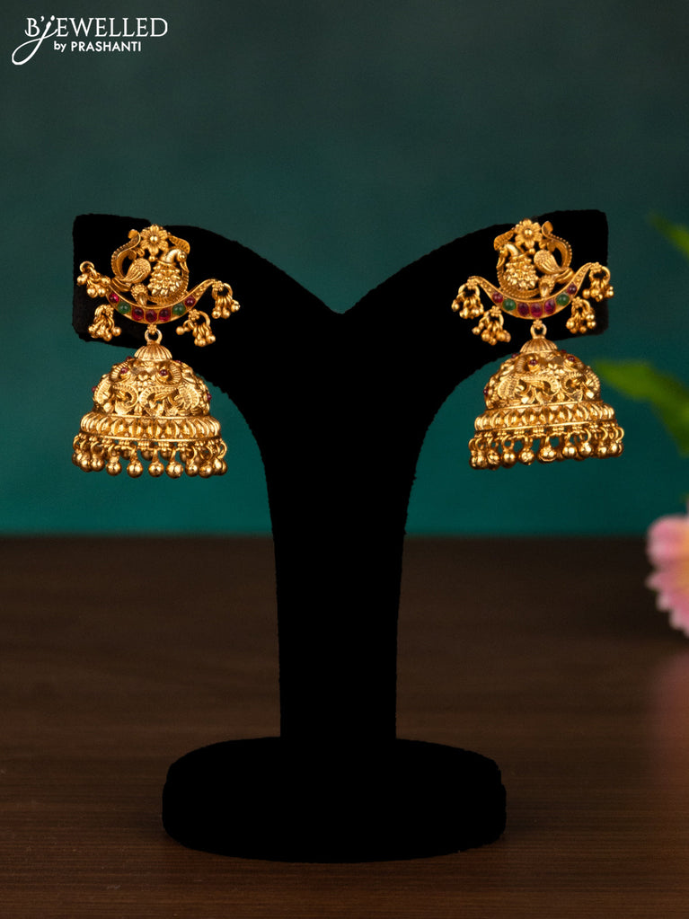 Antique haaram peacock & maanga pattern with kemp stones and golden beads hanging