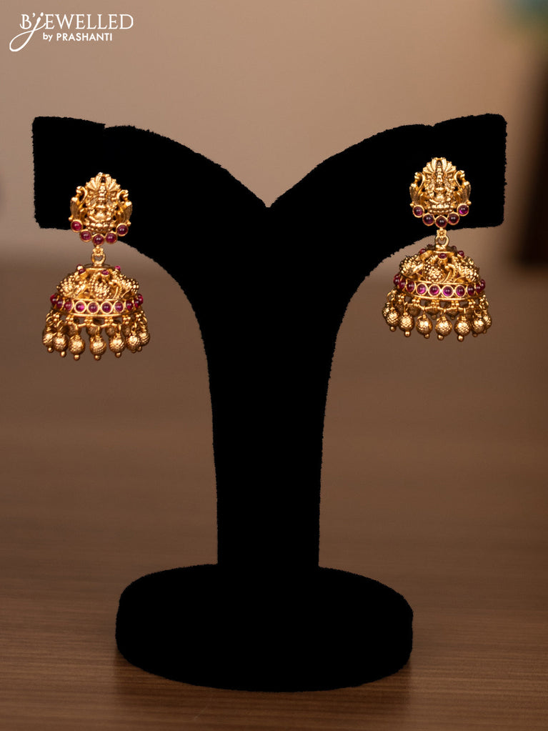 Antique haaram peacock & lakshmi design with pink kemp stones and golden beads hanging
