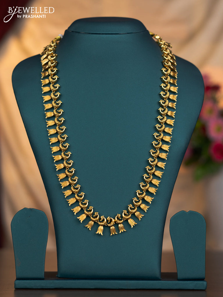 Antique haaram ram parivar & peacock design with kemp stones and golden beads hangings