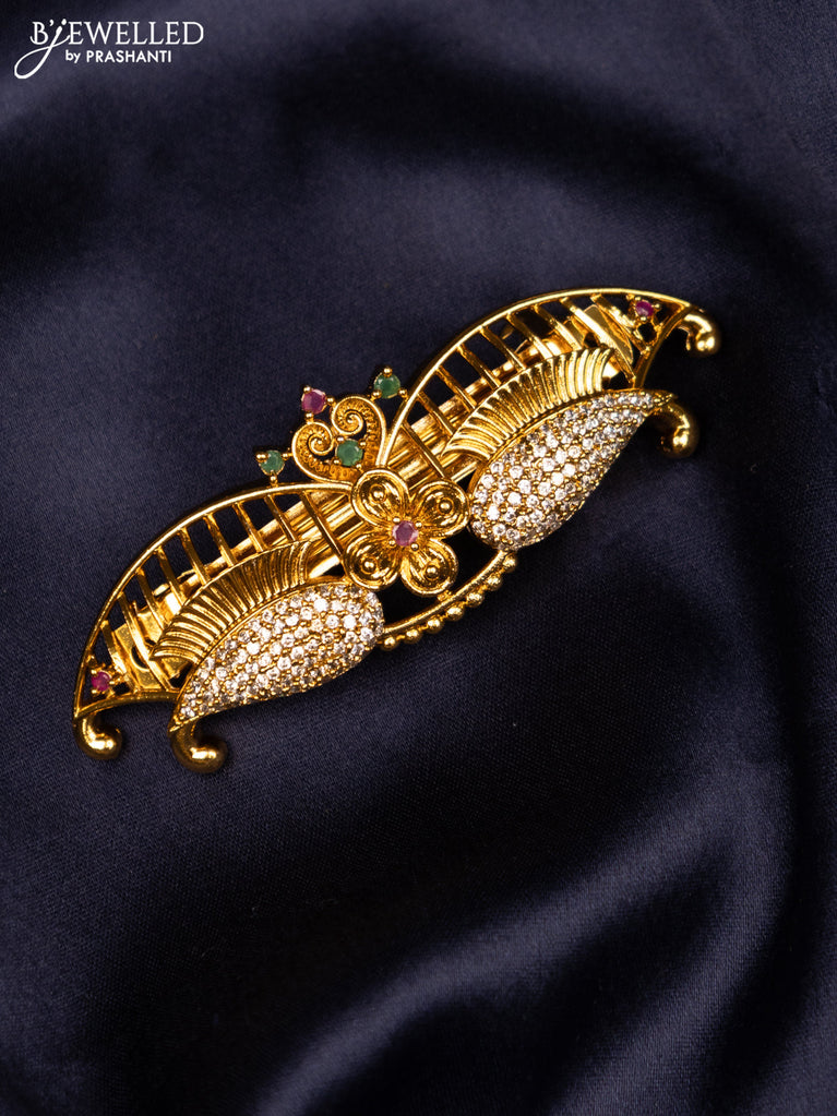 Antique hair clip small size lakshmi design with kemp & cz stones pearl hangings