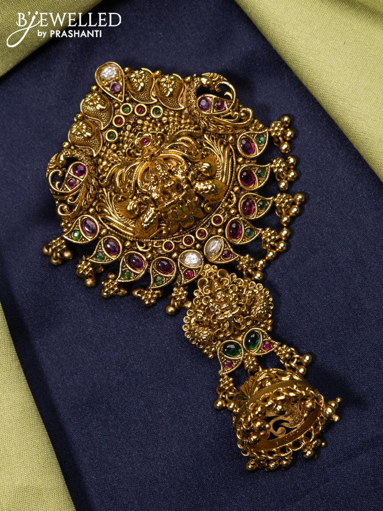 Antique jada billai lakshmi design with kemp stones and golden beads hanging
