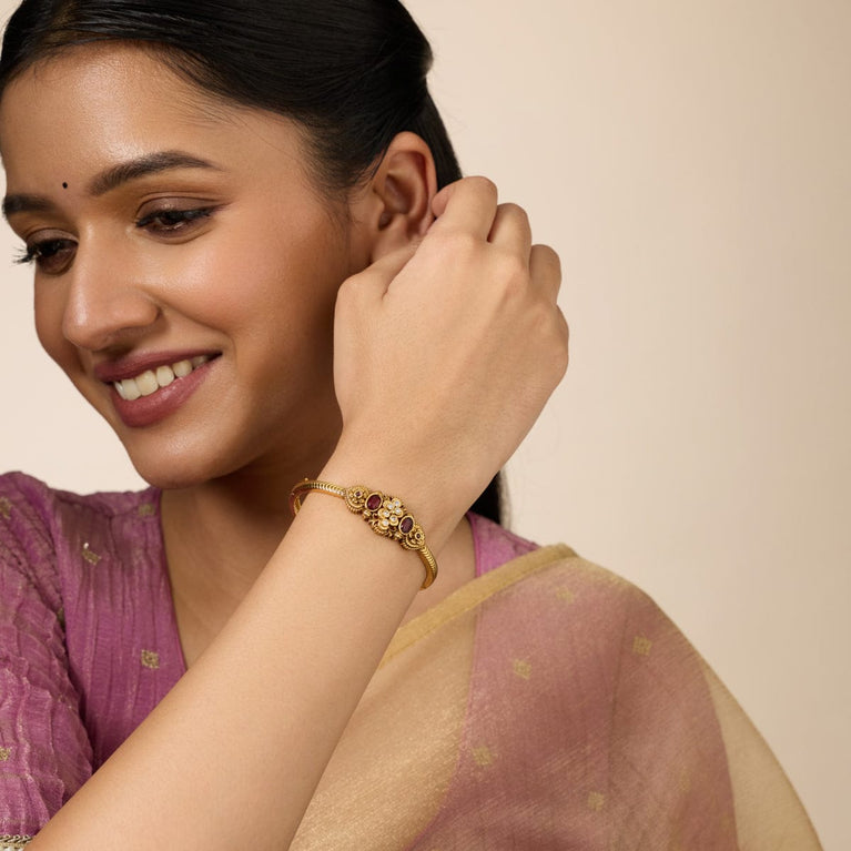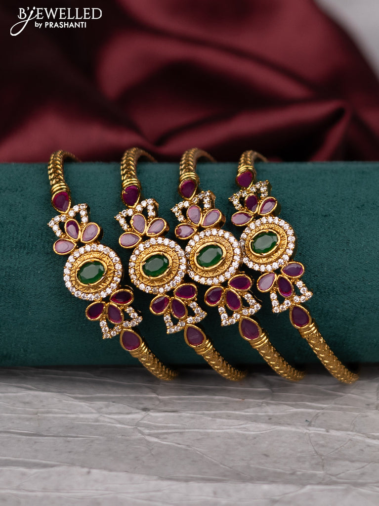 This beautiful Antique-plated Kempu Necklace Set is made of the highest quality metalwork and embroidered with dazzling Ruby & Emerald kemp stones It's perfect for any traditional occasion and makes a bold style statement with its eye-catching desi looks.Go for more options rather going for single design.