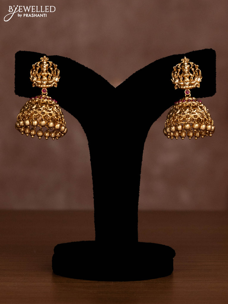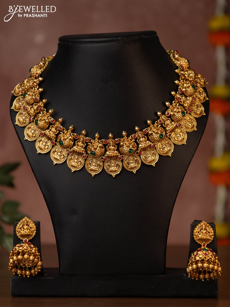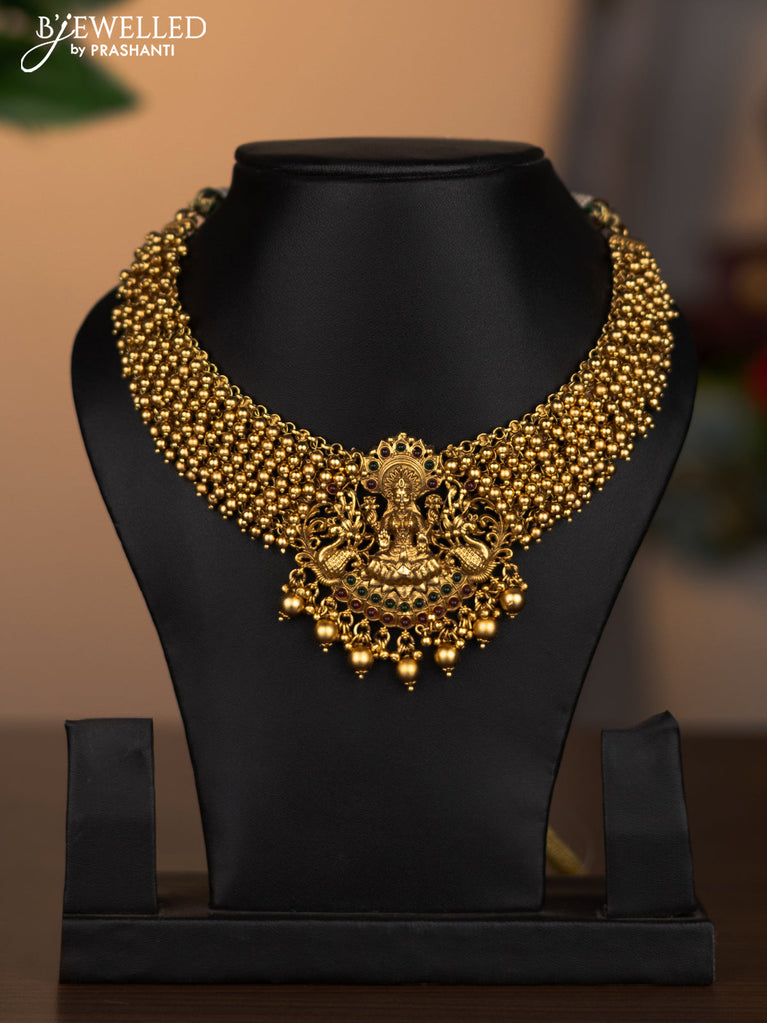 Antique necklace lakshmi design with kemp stones and golden beads hanging