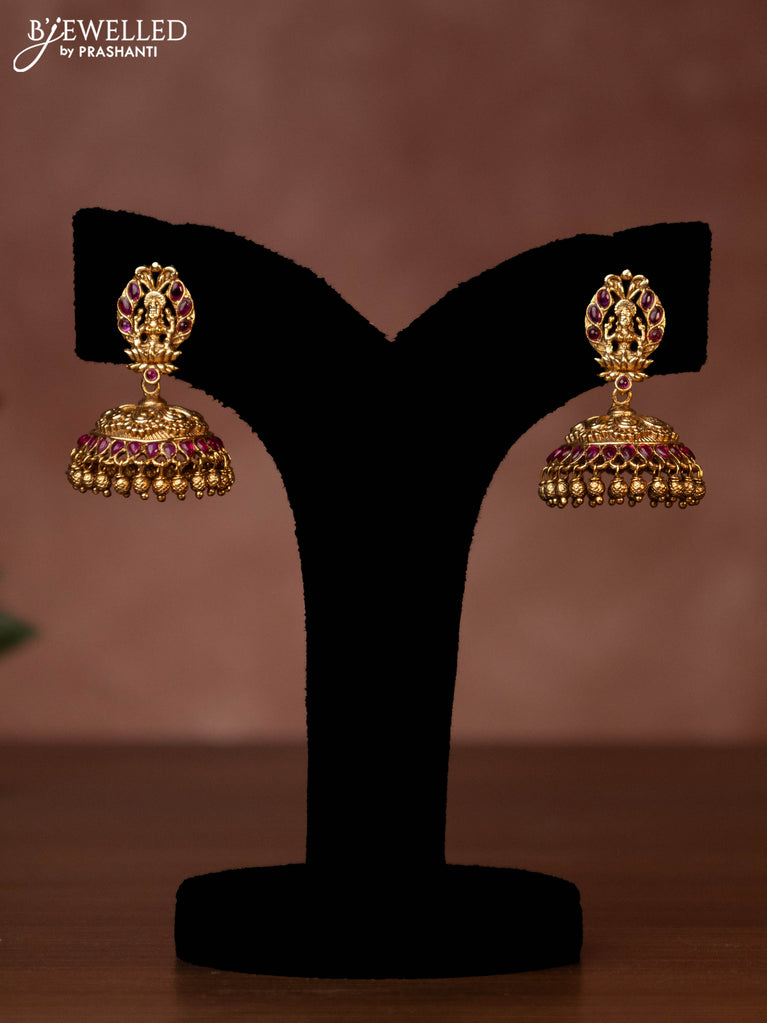 Antique necklace lakshmi design with pink kemp stones and green beads hanging
